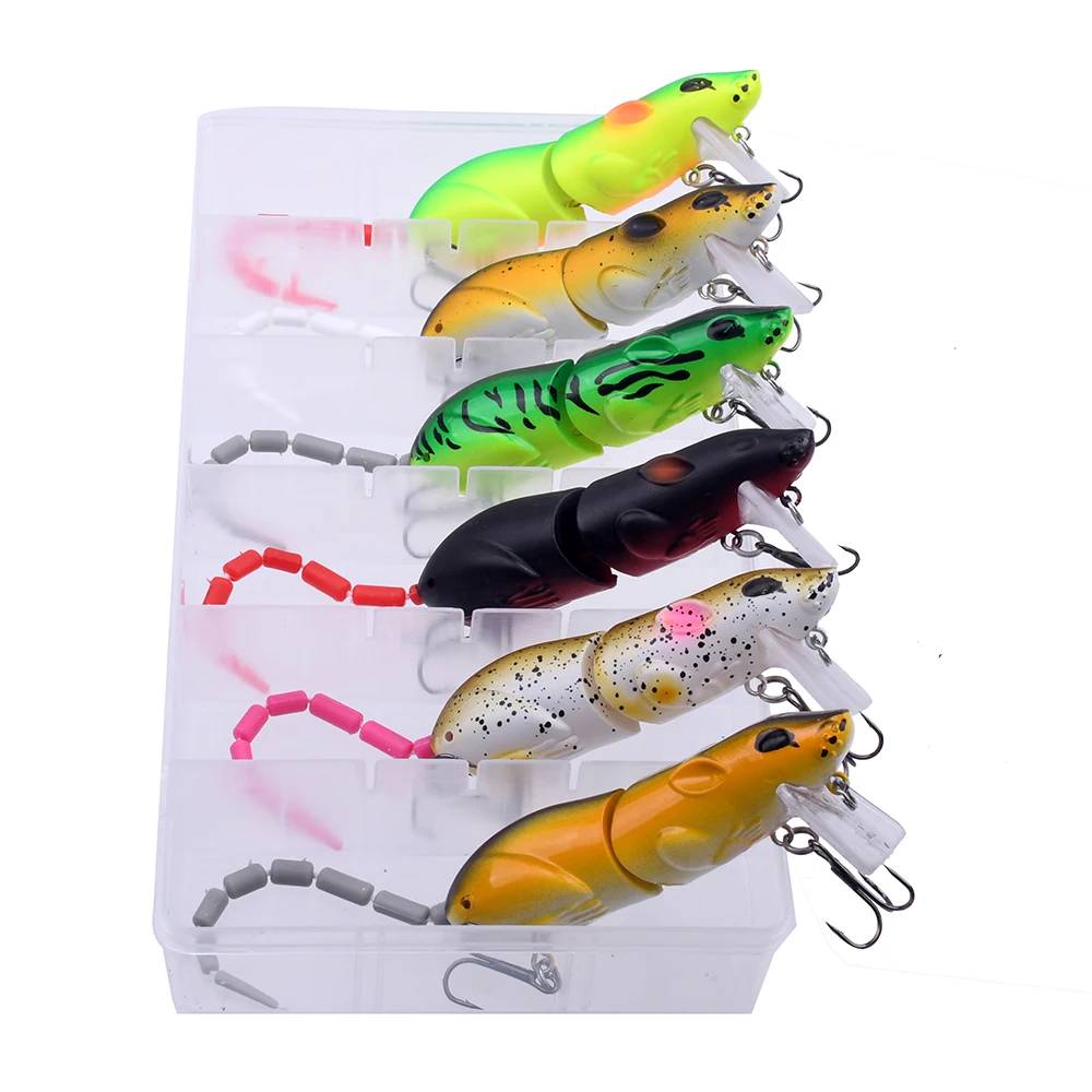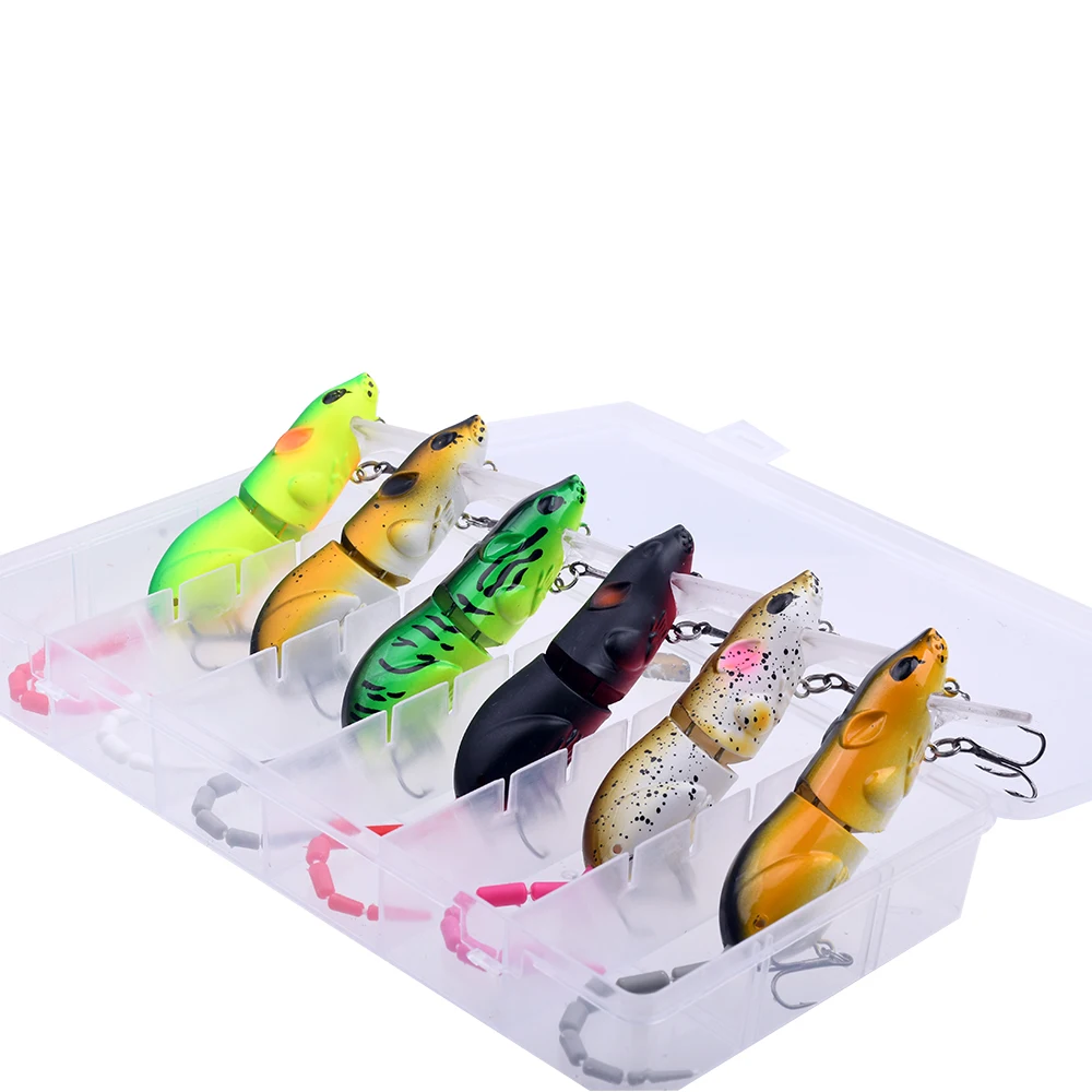 6 unids/caja señuelo de ratón señuelo de pesca de ratón de plástico Artificial Swimbait rata Lucio lubina Minnow cebos flotantes