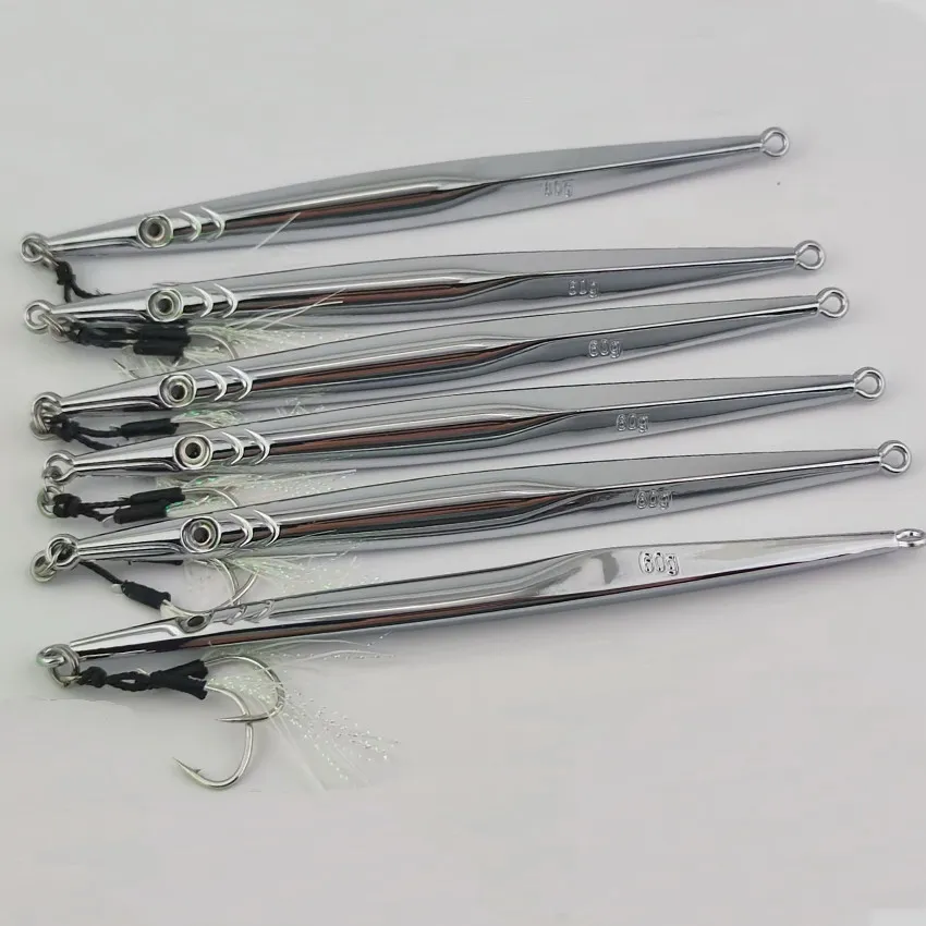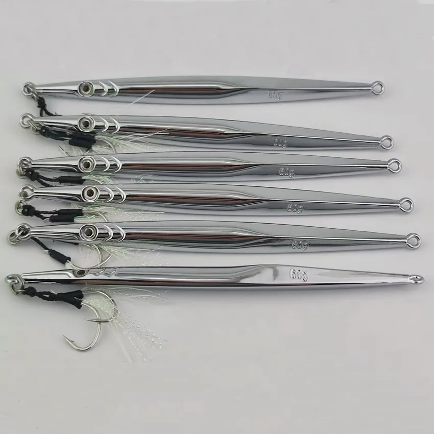 6 unids/lote aleación de Zinc 60g 80g plantilla de pesca de mar plantilla de Metal Señuelos de Pesca cebo duro cebo de pesca de lubina señuelo de Jigging para agua salada