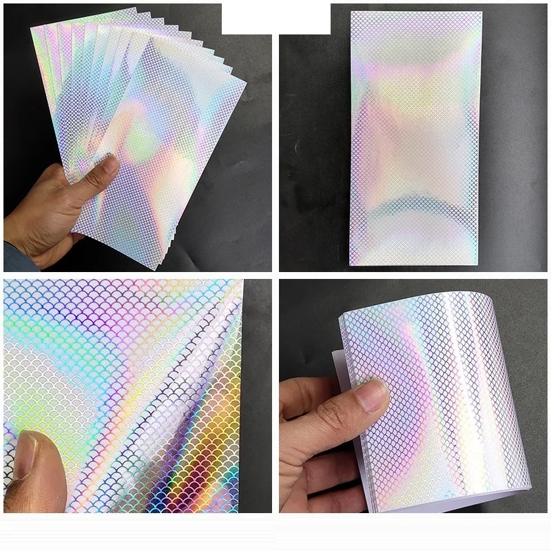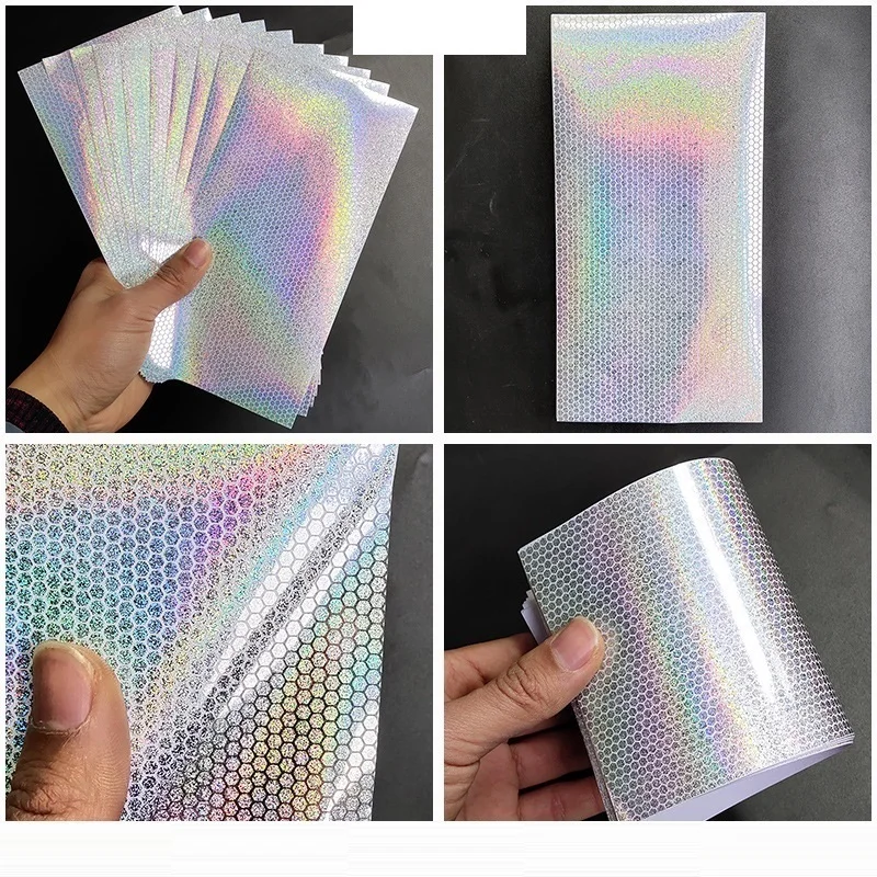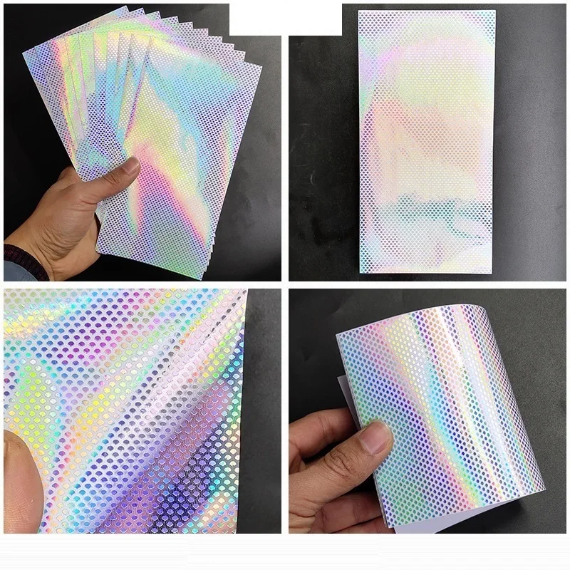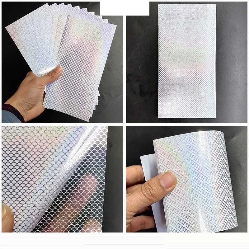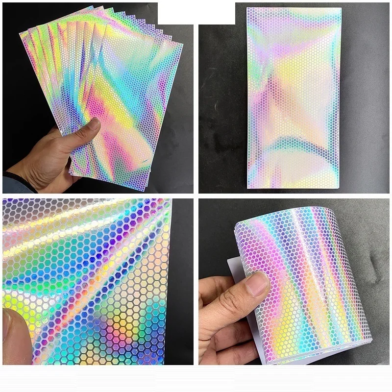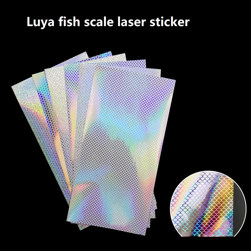 6 unids/lote DIY pegatinas adhesivas de escamas de pescado láser transparente 20X10cm pegatina de holograma de panal de arcoíris accesorios de señuelo de pesca de Metal