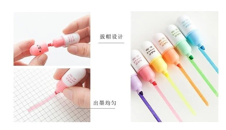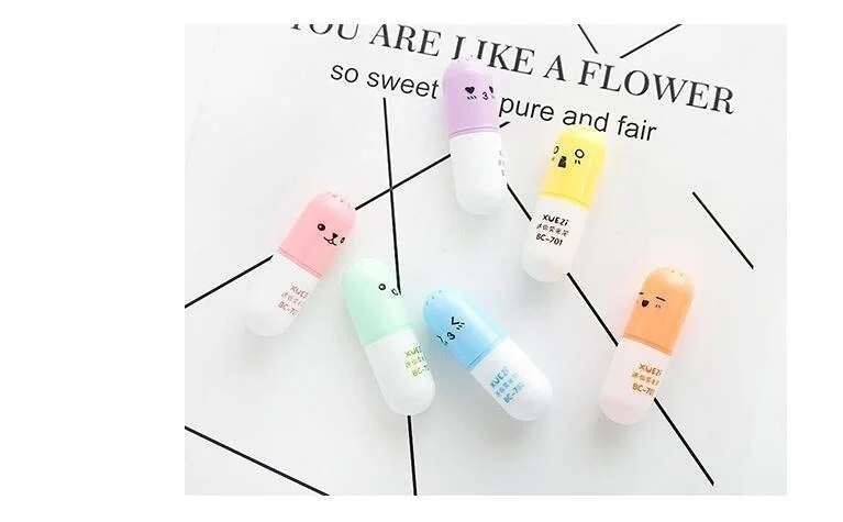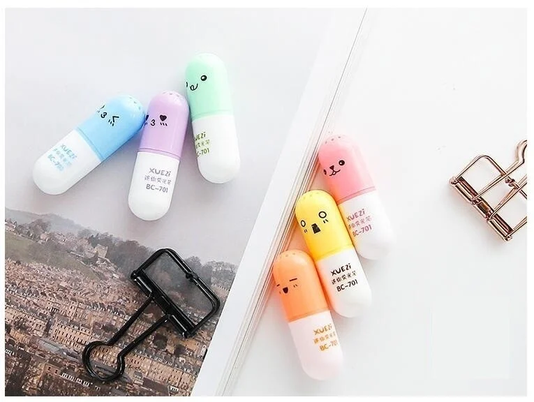 6 unids/pack lindo píldora Mini marcador resaltador pluma de dibujo escuela suministros de oficina niños estudiante papelería