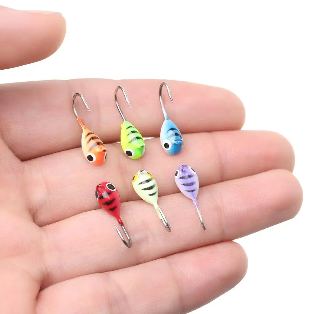 Tipo: cebo artificial Tamaño: 2 cm 1,6 g Categoría: Cebo integrado Material: metal Color: 6 colores Embalaje: 6 uds x señuelo de pesca en hielo