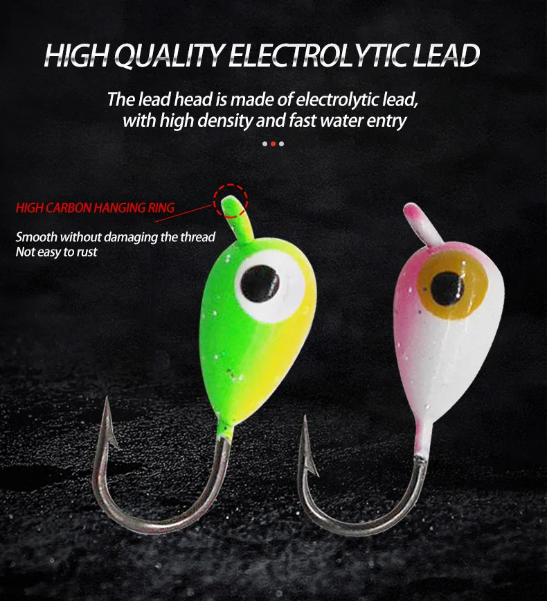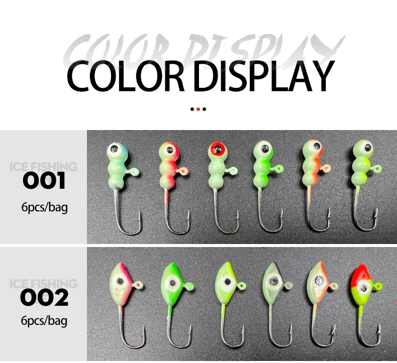 【Material de la cabeza del jig】:Todas las plantillas están hechas de material de plomo y gancho de acero con alto contenido de carbono.