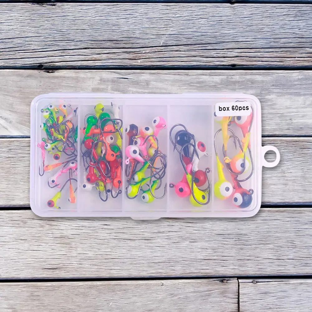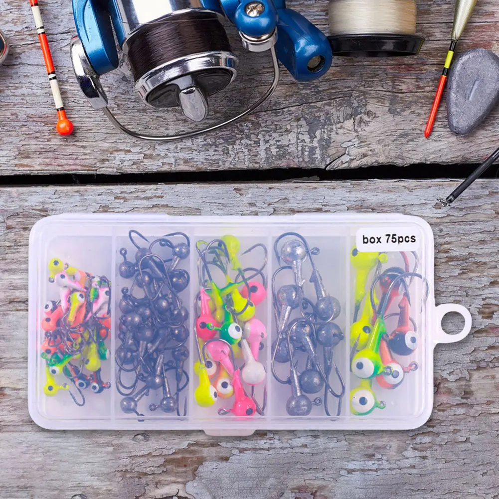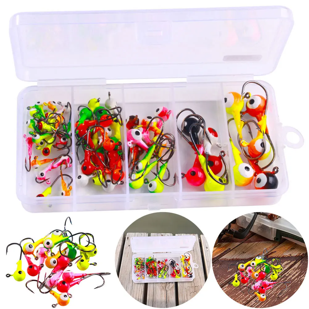 60/75 unids/caja conjunto de anzuelos de pesca con púas coloridas anzuelos con cabeza de anzuelo equipo de pesca accesorios de aparejos