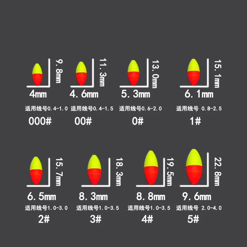 60 paquetes/lote flotador de siete estrellas 000 # -4 # Mini flotador de pesca de oliva, accesorio de aparejos de pesca de carpa Bobber B645