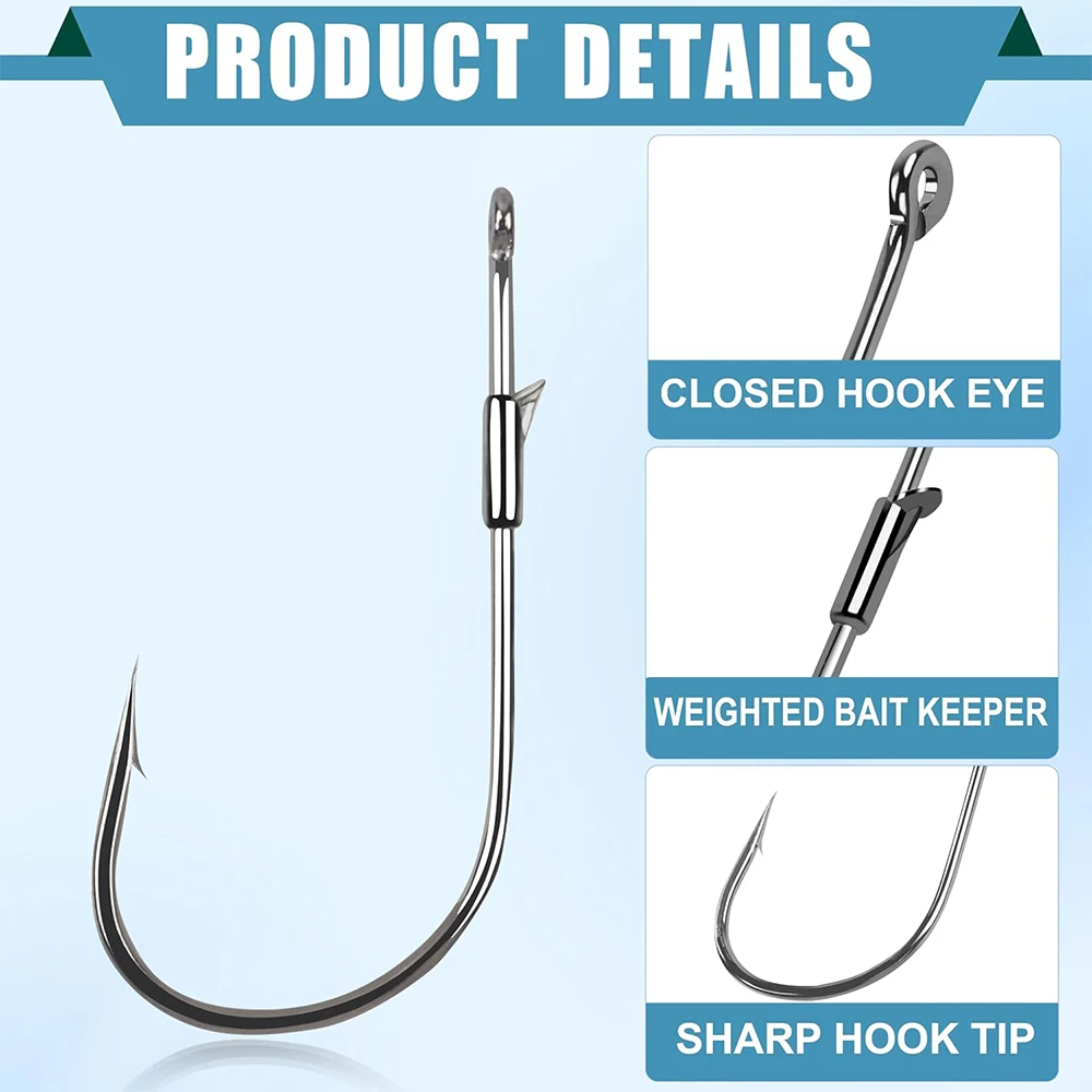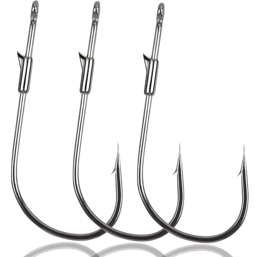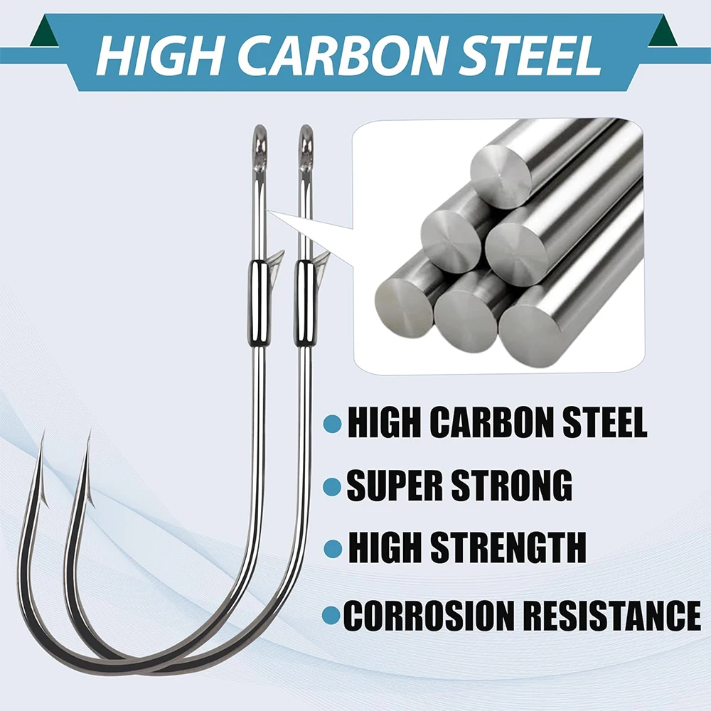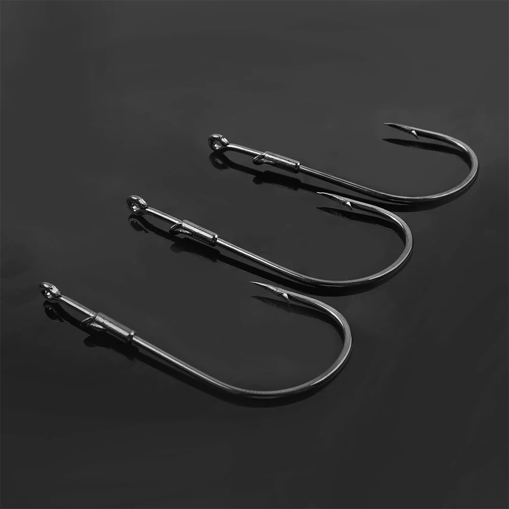 MATERIALES PREMIUM: los ganchos volables están hechos de acero con alto contenido de carbono con acabado en níquel negro y resistentes a la corrosión, lo que los hace ideales para entornos de agua salada.Están diseñados para resistir la tracción de peces grandes sin doblarse, lo que garantiza durabilidad y confiabilidad.
