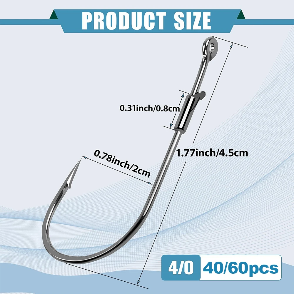 MANTENGA EL BAÑO FIRMAMENTE: los anzuelos de gusano de bajo cuentan con un soporte de cebo soldado que asegura firmemente los cebos de plástico blandos, evita que los cebos blandos se deslicen del anzuelo y extiende la vida útil de sus plásticos blandos.El espacio del anzuelo está diseñado para una mordida fuerte y puede adaptarse a una variedad de tamaños de cebo.