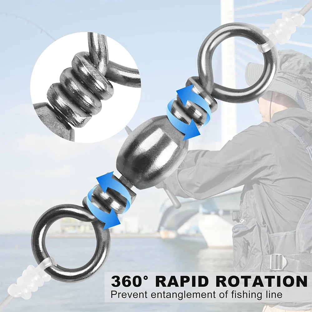 【Rotación suave y sin torsión】El barril giratorio de pesca puede girar suavemente 360° y absorber la rotación del cebo antes de pasar al hilo de pescar.