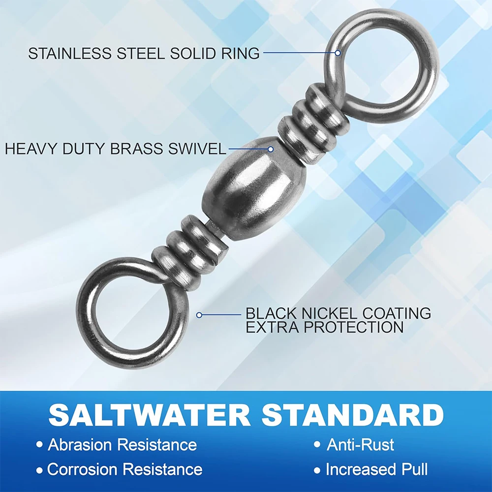 【Conexión estable】 Los anillos en ambos extremos son suaves y sin costuras, no rayarían las líneas.El émión de pesca de barril de acero inoxidable proporciona una conexión más estable y un uso duradero.