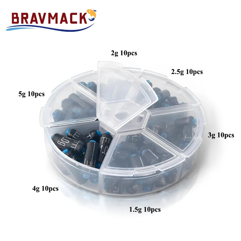 60 unids/caja 1,5g-4.0g combinación de plomo de pesca plomo regla de pesca juego de plomo reemplazo rápido aparejos de pesca