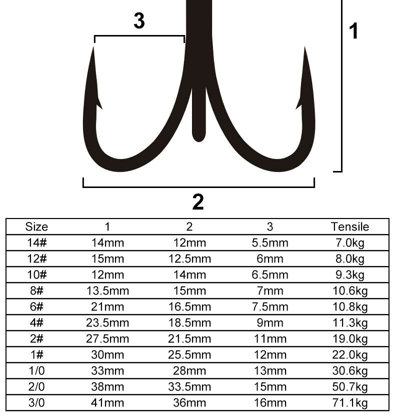 6062 3X 4X 5X 10 unids/bolsa 1 # -14 # Anzuelo triple híbrido fuerte de alto carbono, 1/0-3/0, gran juego de agua salada, anzuelos triples de pesca fuertes