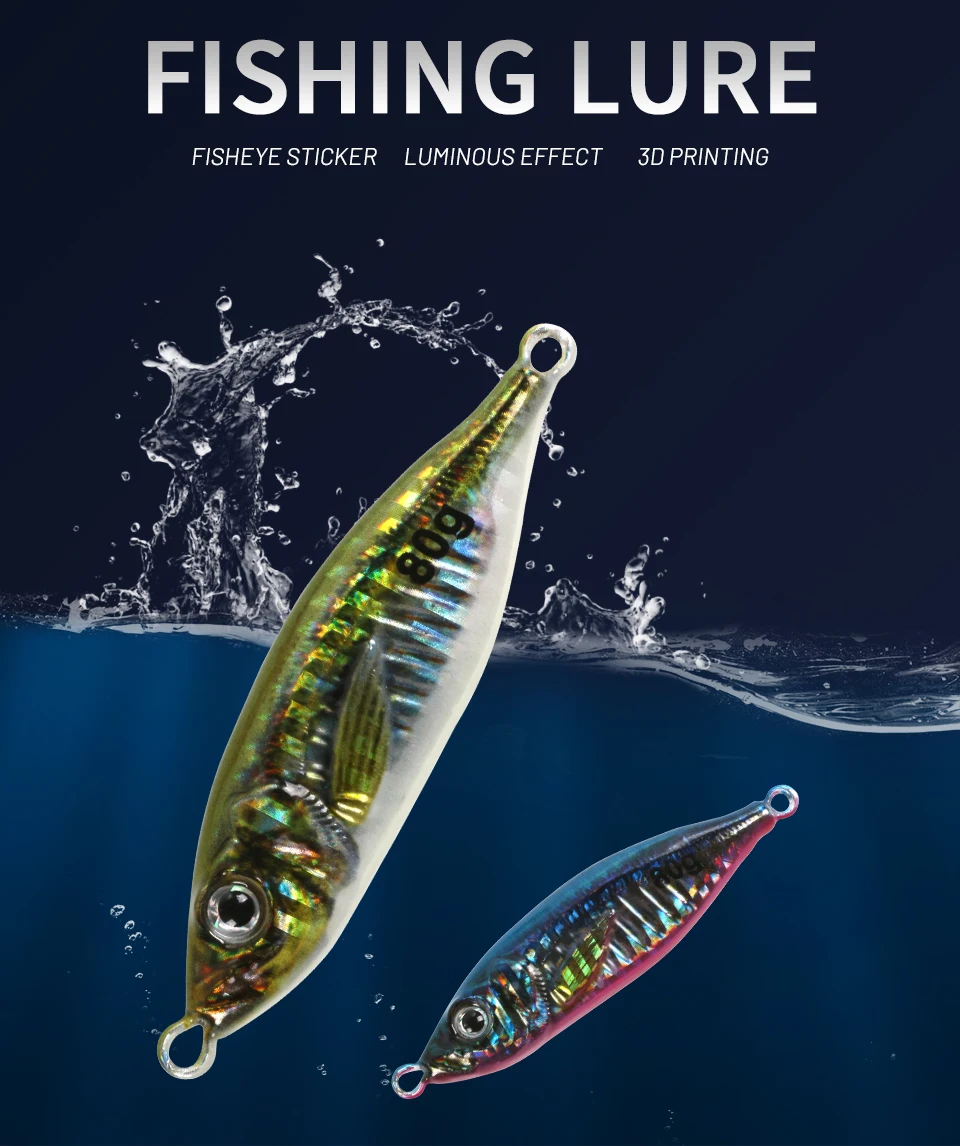 Señuelo de pesca con Jig de Metal de 60g y 80g, Micro señuelo de Jigging, estampado 3D, cuchara de fundición de orilla lenta, cebo con ganchos de asistencia