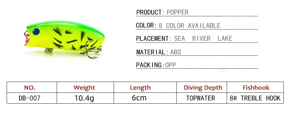 6CM/10.4G ALASICKA8# Hooks1Pc 3D Eyes Fishing Lure Pesca Fish Lifelike Popper Lures Wobbler Isca Artificial Hard Bait Swimbait