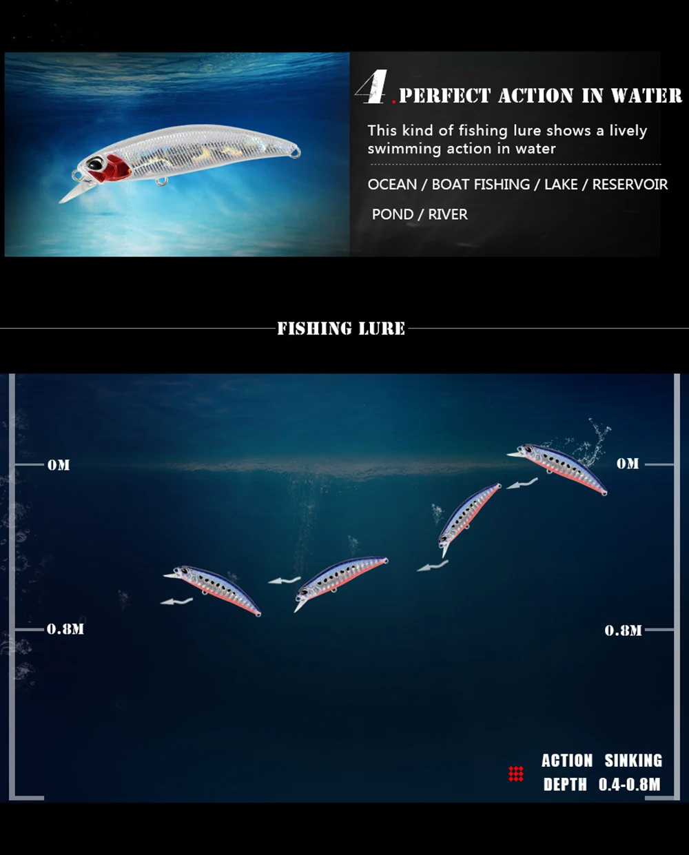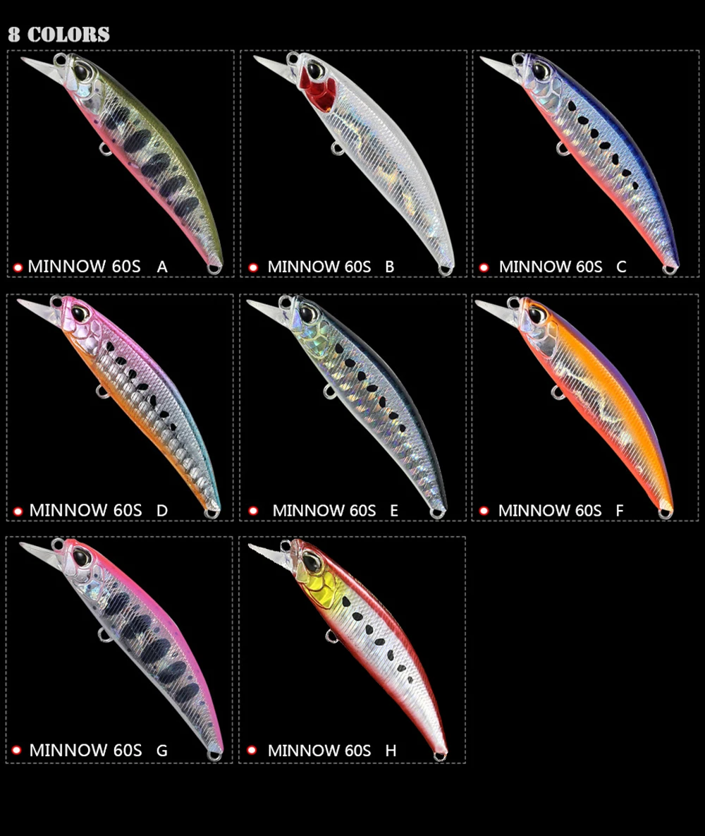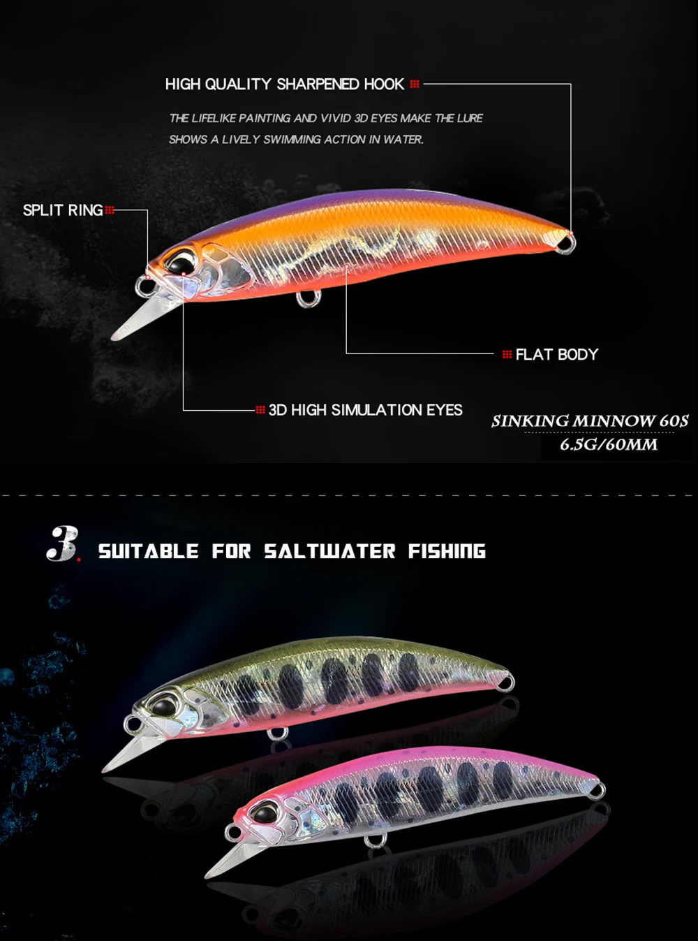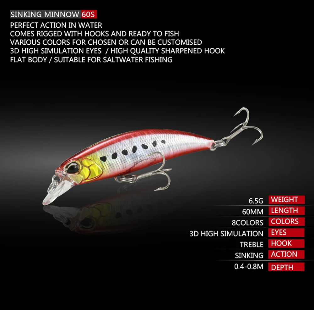 6cm 6.5g Fishing Lure Minnow Wobbler 60S Sinking Jerkbait Swimbait Artificial Hard Bait Ocean Fishing Bionic Decoy Bass Bait