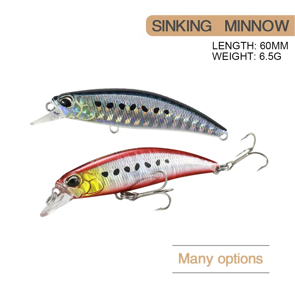 6cm 6.5g Fishing Lure Minnow Wobbler 60S Sinking Jerkbait Swimbait Artificial Hard Bait Ocean Fishing Bionic Decoy Bass Bait