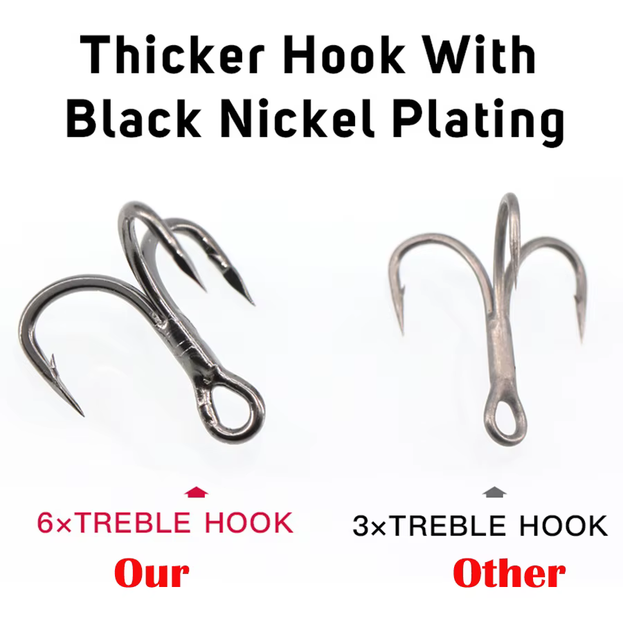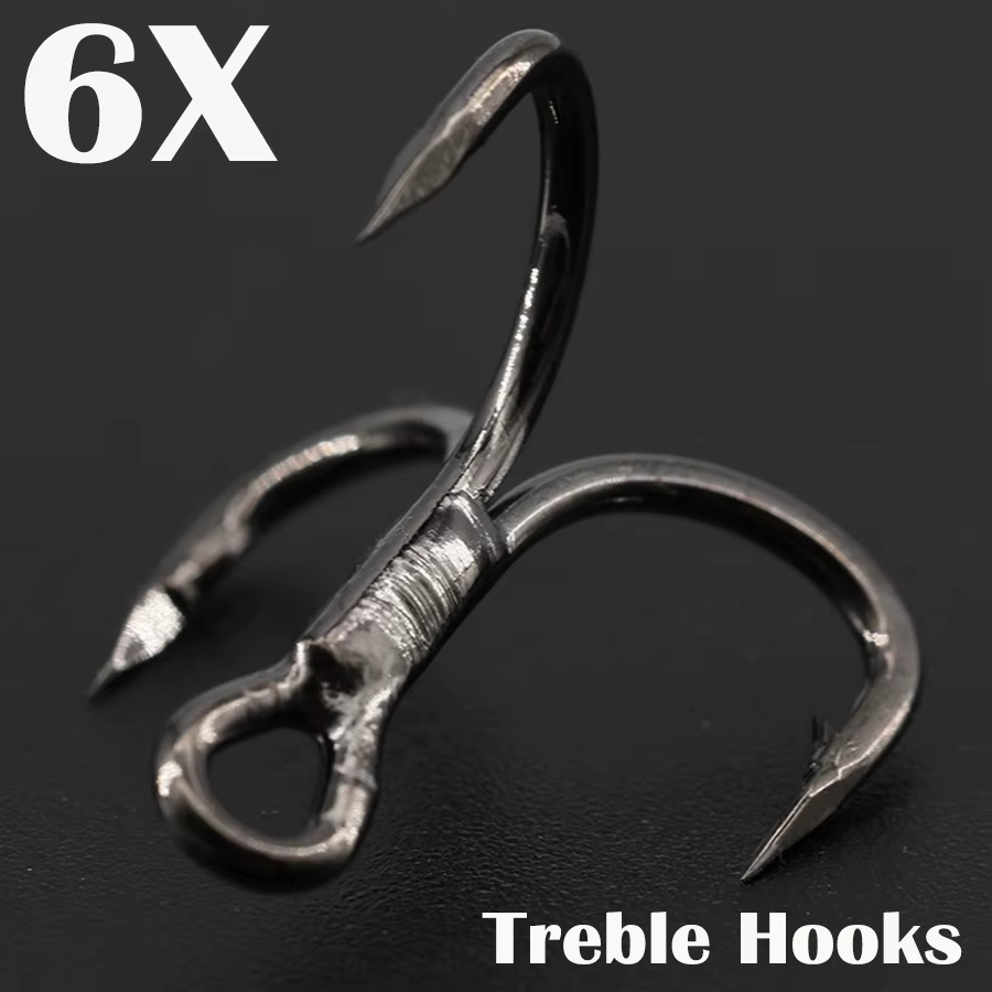 50 Uds 6x anzuelos de pesca fuertes anzuelos triples para gancho mejora hoja de corte vástago corto níquel negro