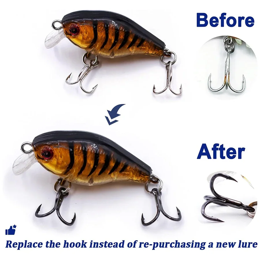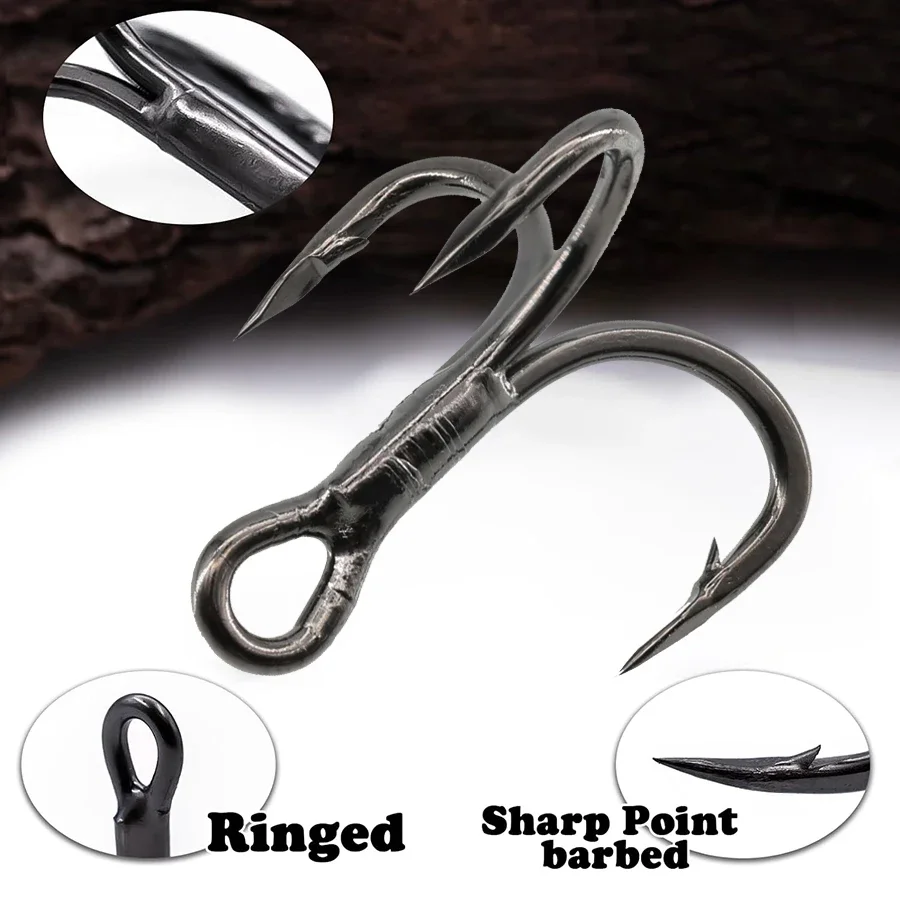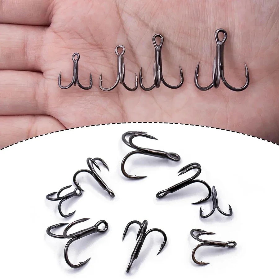 Fishing Treble Hooks Black 10Pcs Triple Hooks High Carbon Steel Barbed Sharp Replacement Fishing Hooks on Hard Lures for Freshwater Saltwater