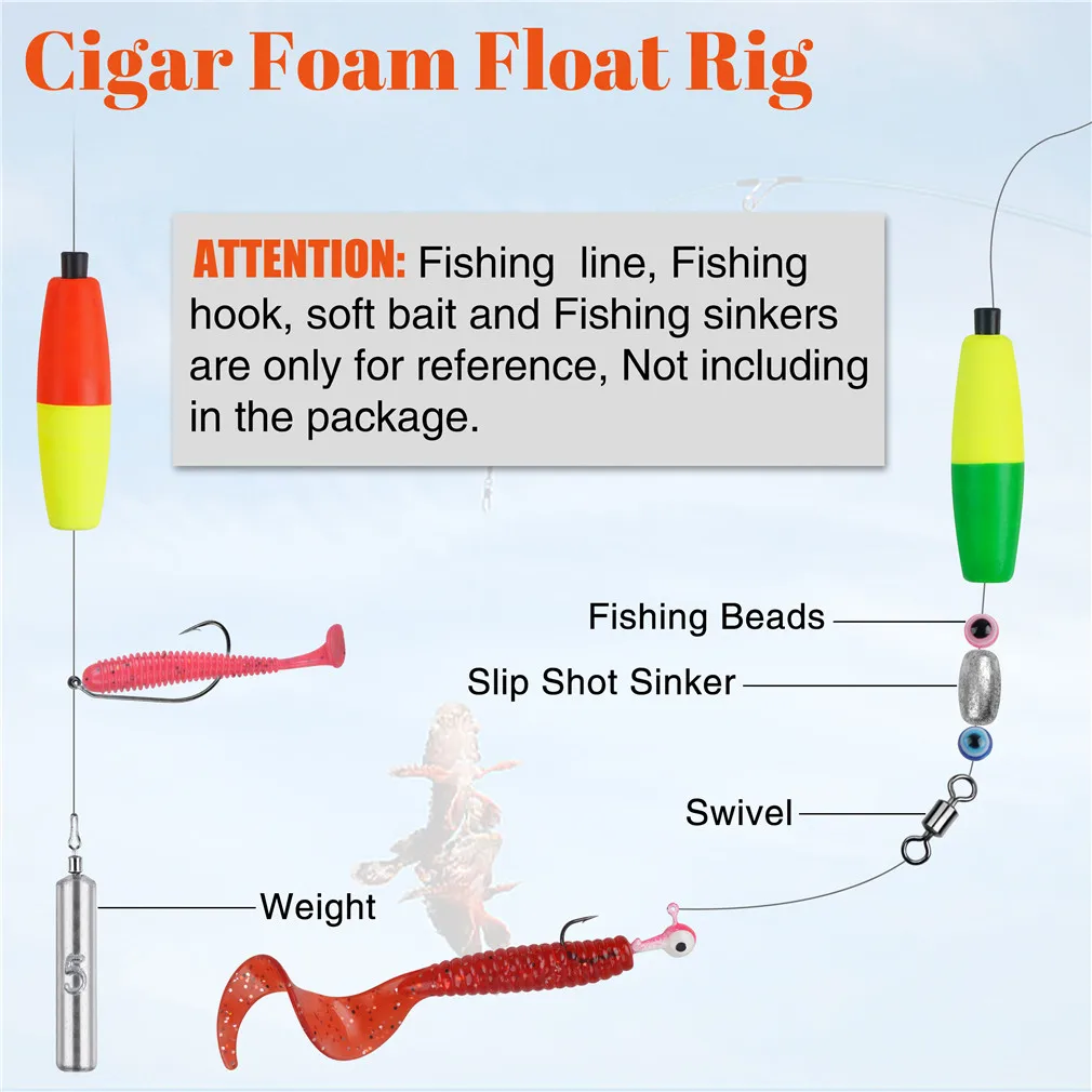 3. Funciona muy bien con todos los demás señuelos o cebos de tamaño similar, flotador de espuma de pesca, indicador de huelga para plataforma de pompano inferior, trucha, bagre, lucioperca, flotador de pesca con mosca, boya Bobber, aparejo de pesca de Surf en agua salada, accesorios de aparejos de pesca de agua dulce.