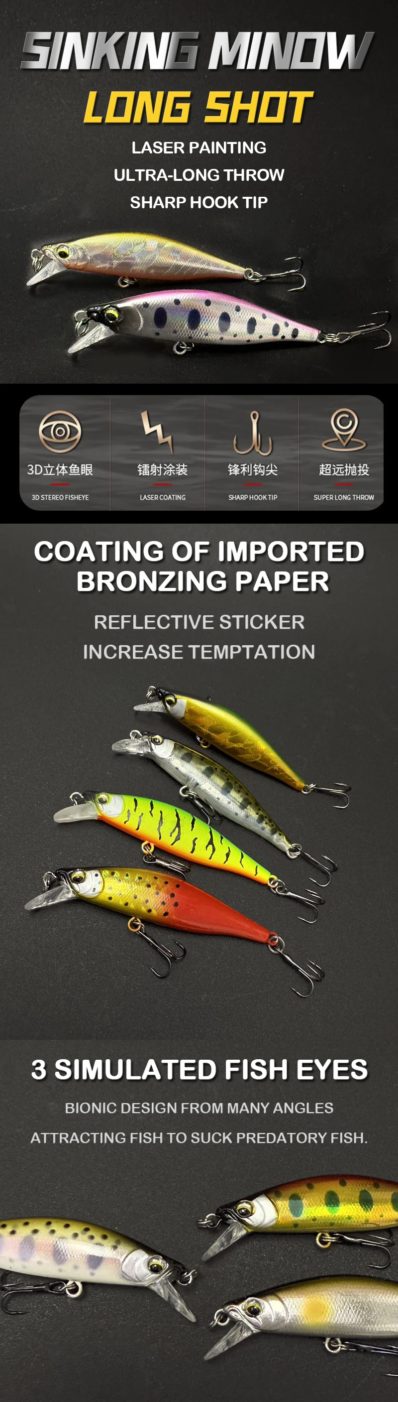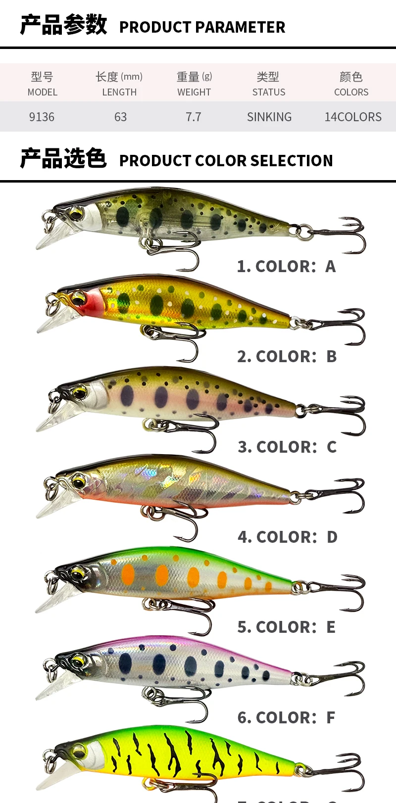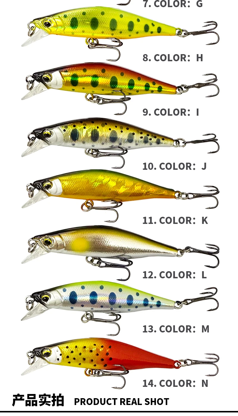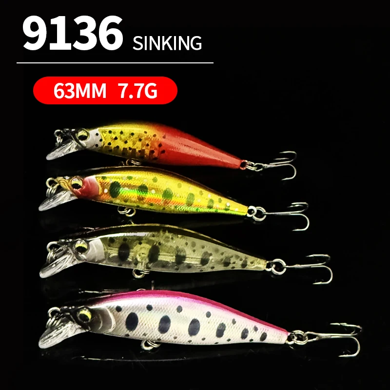 7,7g 63mm hundimiento Minnow señuelo de Pesca Artificial Pesca trucha señuelo arroyo lago aparejos de Pesca Jerkbait Rockfishing cebos duros