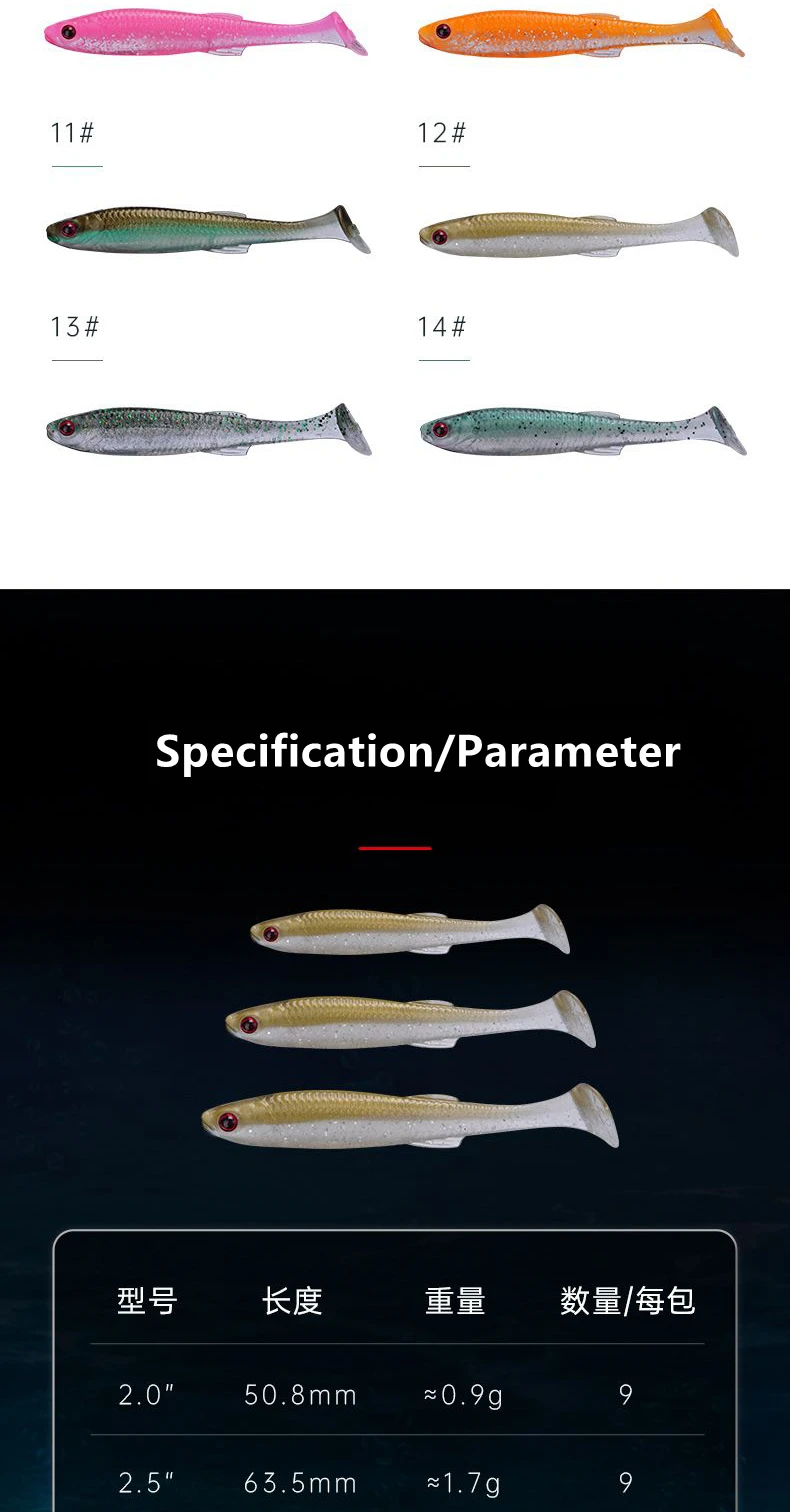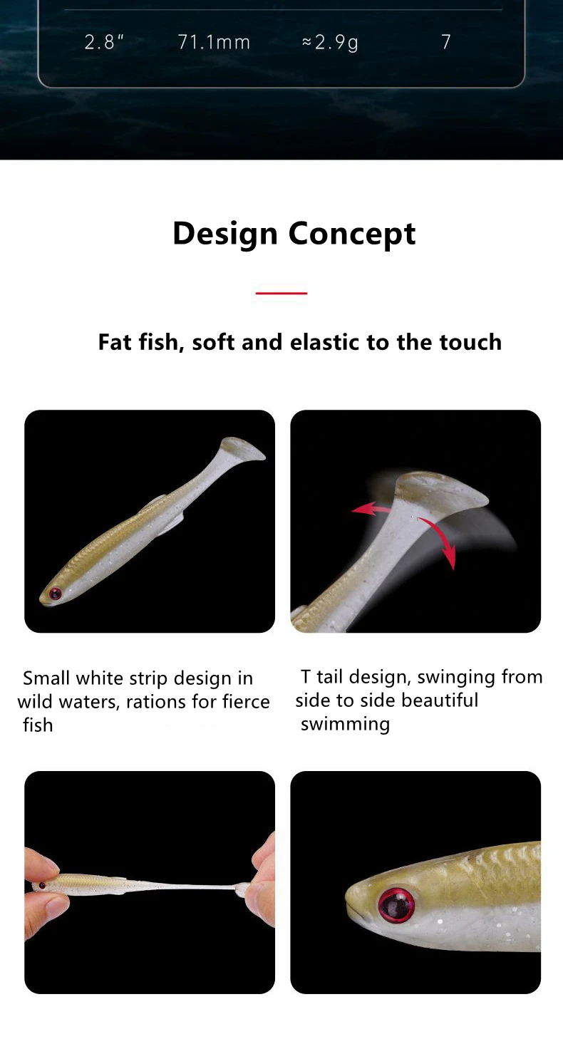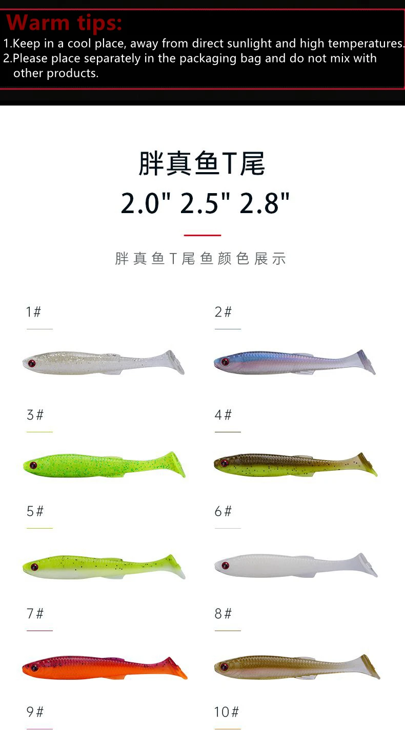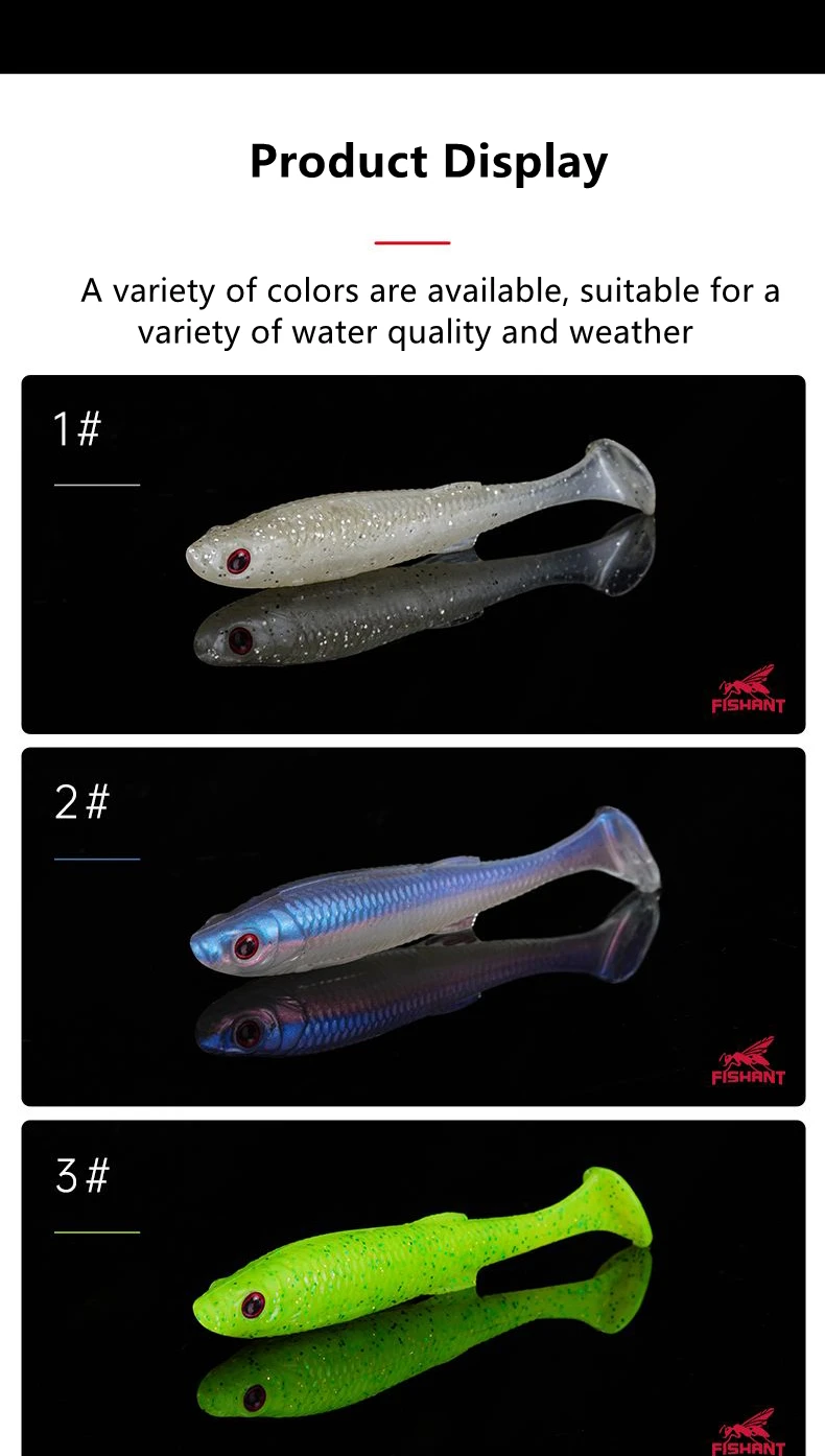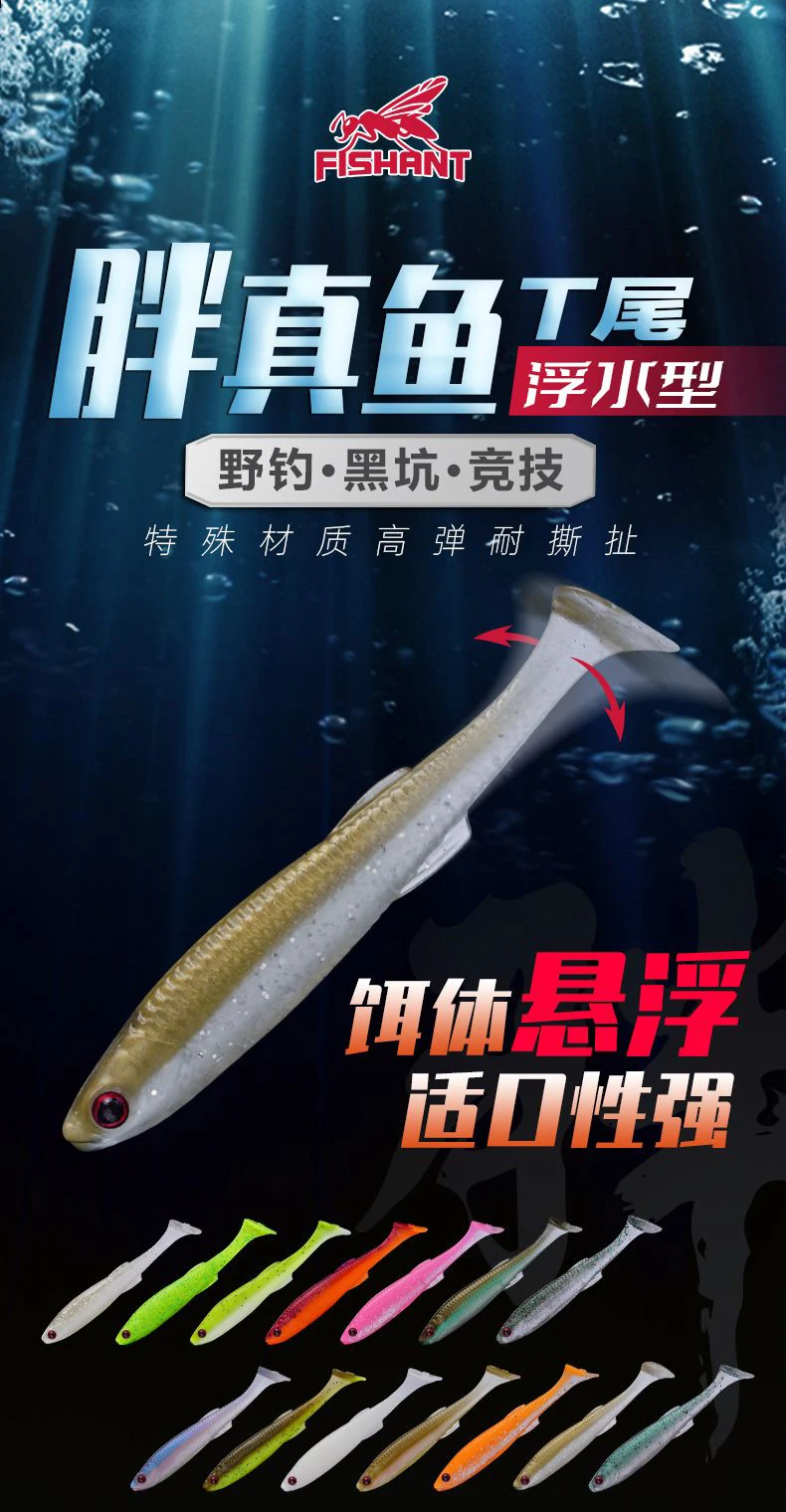 7/9 Uds FISHANT pez Real gordo cola en T señuelos blandos flotantes 50,8/63, 5/71,1mm cebo de silicona pesca en el mar Wobblers cebo falso Artificial