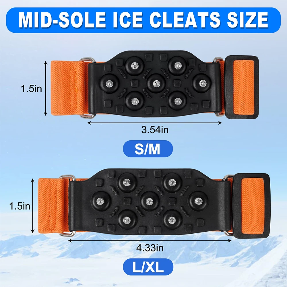 【ANTIDESLIZANTE】 Los tacos para hielo de suela media cuentan con 7 pernos de acero de tungsteno en cada almohadilla para tacos, confiables y seguros. Proporciona una excelente tracción en una variedad de terrenos o superficies resbaladizas, lo mantiene seguro y sin lesiones al caminar sobre nieve y hielo.