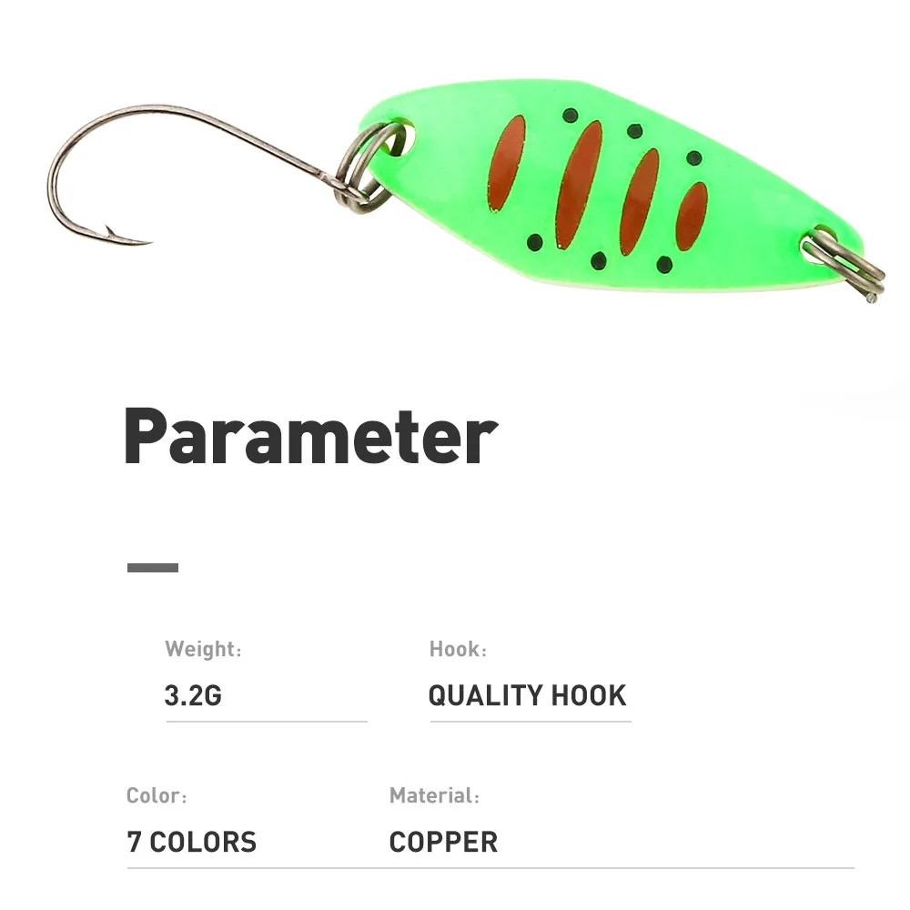 7 Uds Testar Spinner de Metal 3,2g cuchara señuelo de pesca de trucha plantilla cebo duro lentejuelas ruido Paillette cebo Artificial lentejuelas pequeñas