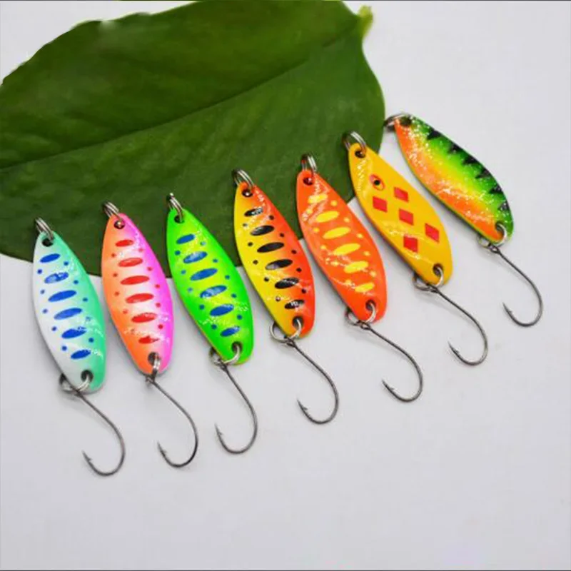 Descripción :7 unids/lote 3.5g 3.4cm aparejos de pesca cebo cuchara de Metal señuelo cebo para trucha lubina cucharas pequeñas duras lentejuelas Spinner cuchara