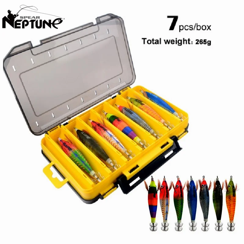 7 unids/set anzuelo de calamar con batería, señuelos falsos artificiales luminosos, pulpo Egi, sepia, cebo duro, plantillas de pesca marina