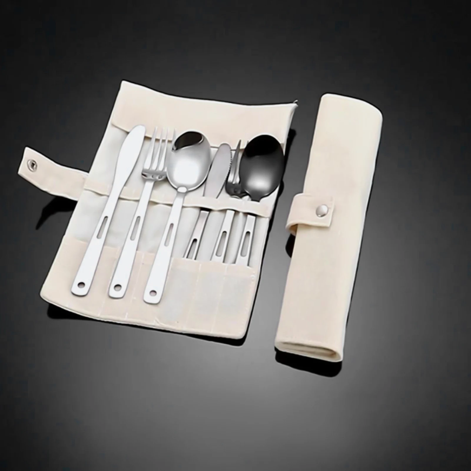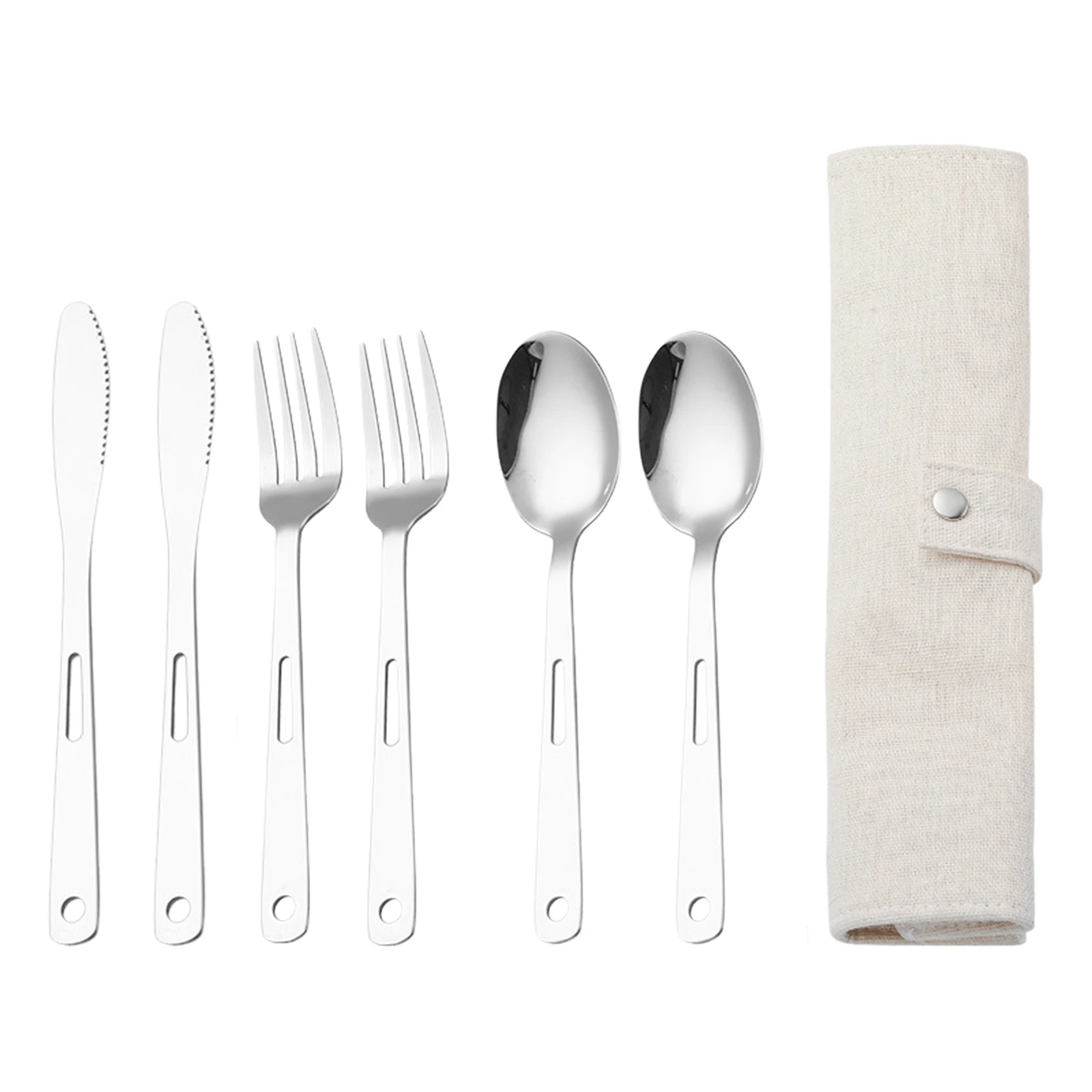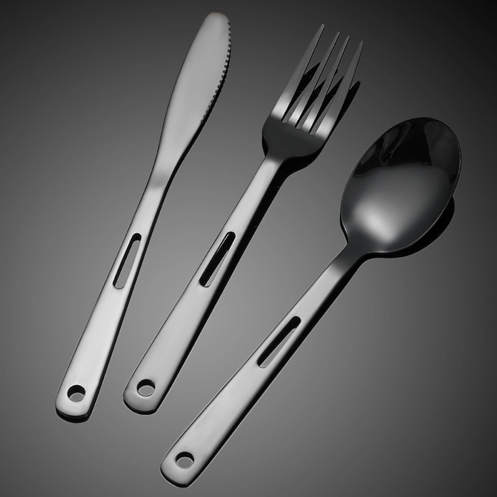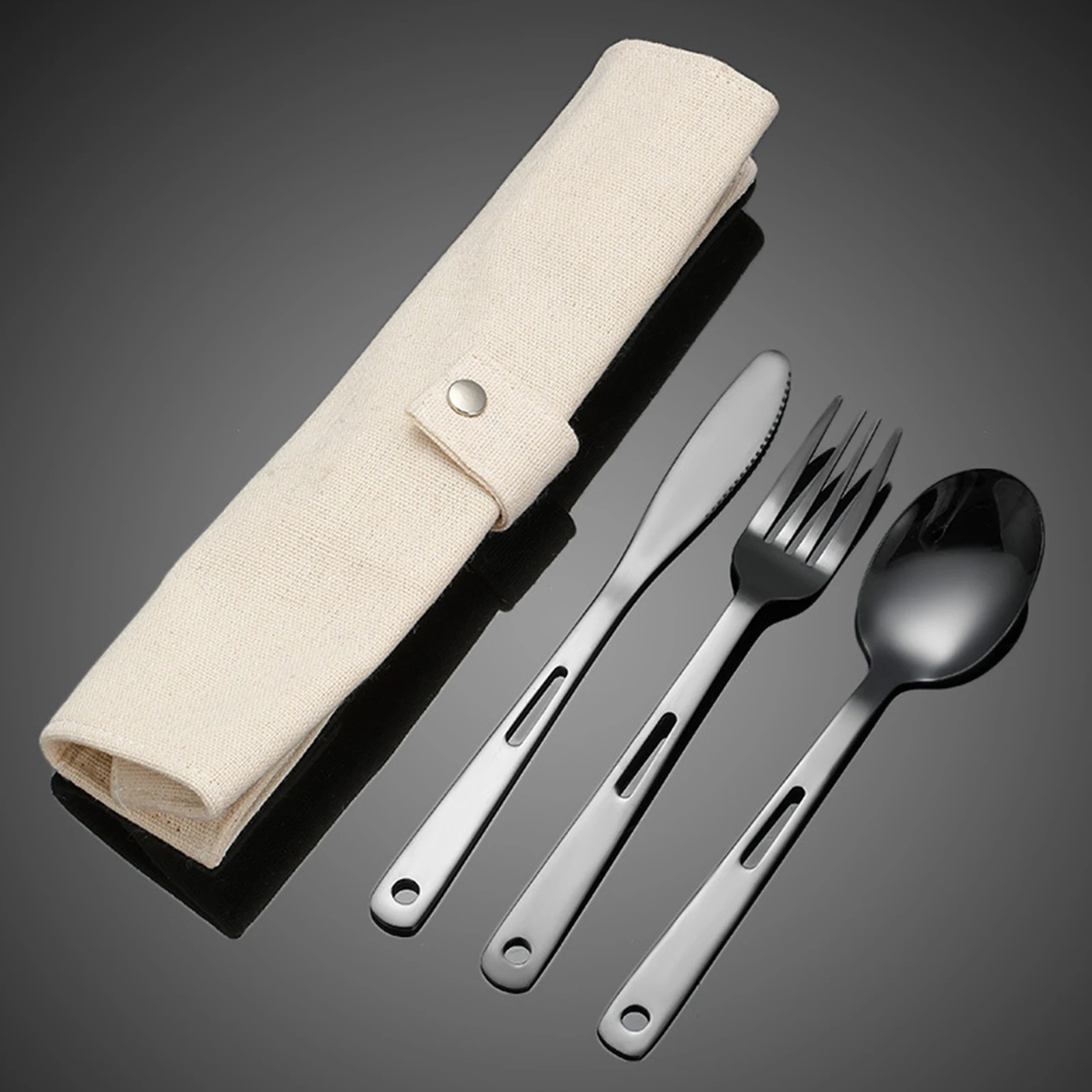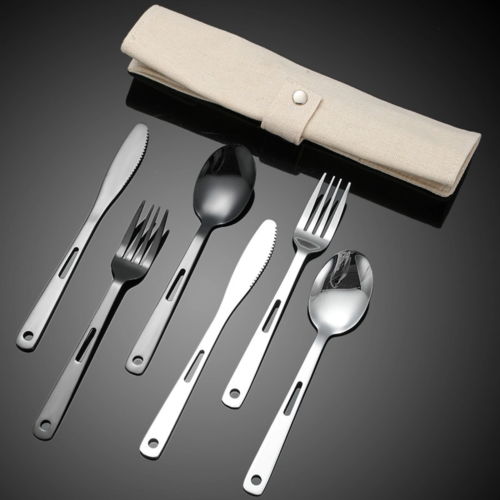 Comodidad portátil: este juego de cuchara y tenedor con cuchillo para cubiertos portátil viene con una bolsa de transporte liviana, lo que facilita su embalaje para cualquier viaje, picnic o aventura de campamento.