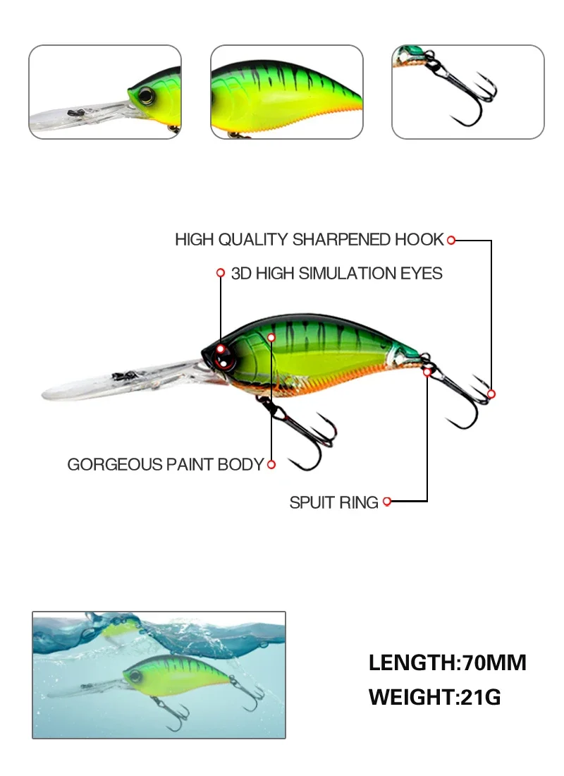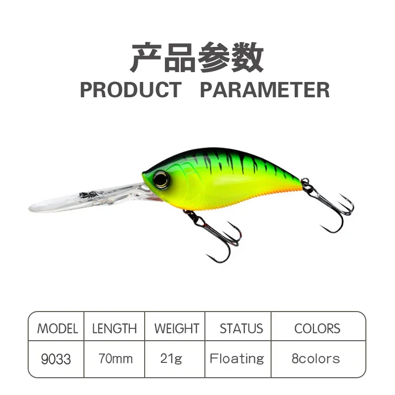 70mm 21g Topwater Crankbait señuelo de Pesca manivela de buceo carpa Wobbler trucha Swimbait Isca Pesca aparejos de Pesca artificiales CB033