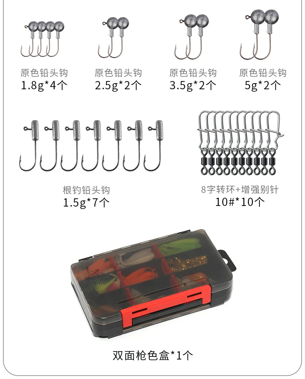 75/35 Uds Multi silicona suave señuelo de Pesca cebo Jig Head Wobblers gancho de goma para Pesca de carpa Kit de aparejos de Metal caja Set Pesca