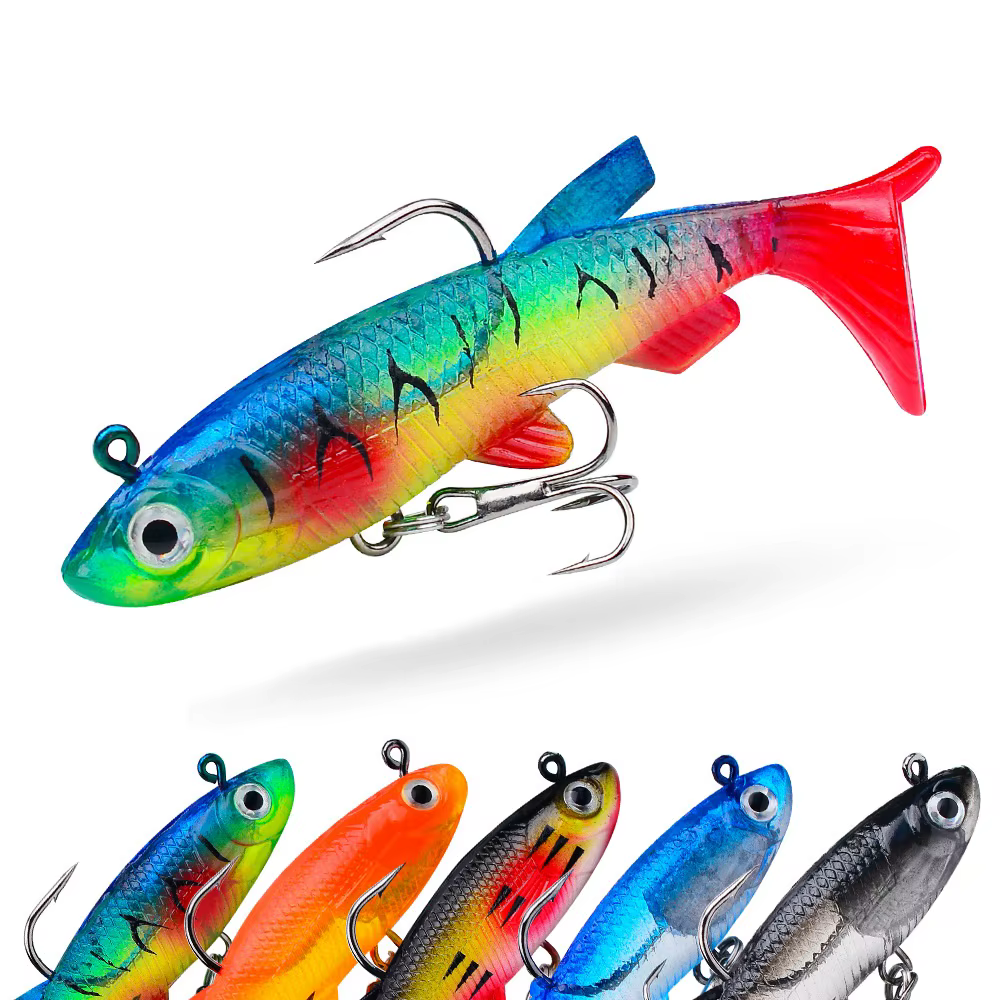 7,5 cm/13,5g cabeza de Jigging señuelo suave cola en T señuelo de pesca de lubina aparejos cebo de silicona Wobblers pesca en el mar señuelos blandos Swimbait