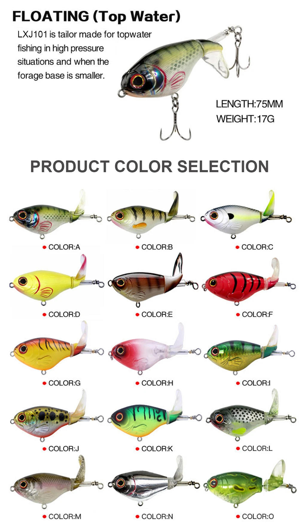 7.5cm 17g Fishing Lures Floating Spin Bait Wobbler Topwater Tail Spinner Whopper Plopper Artificial Hard Bait Bass Trout LXJ101