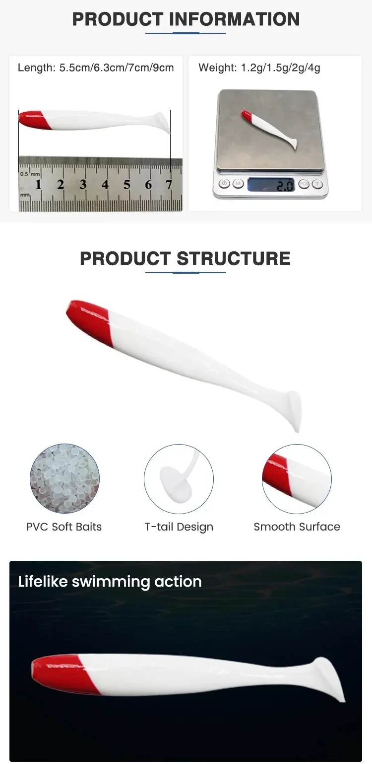 7cm 9cm 12cm 10 unids/bolsa T-tail cebo suave cabeza roja cebo biónico blanco suministros de pesca