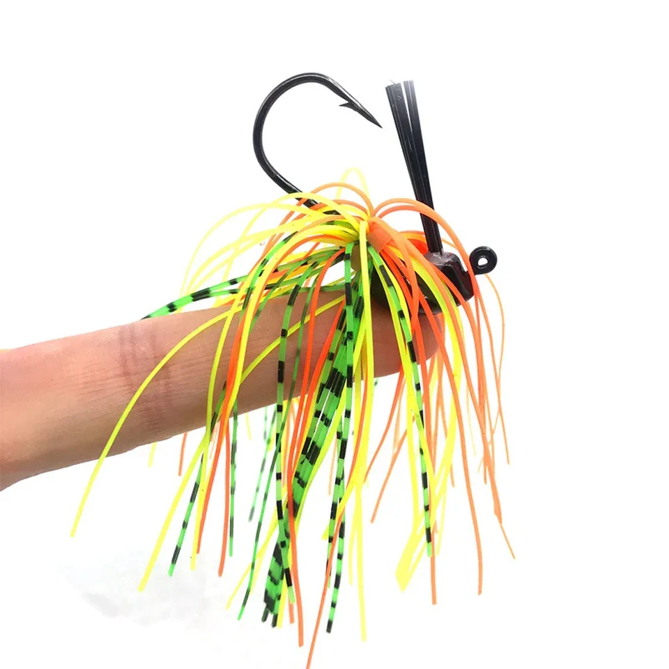 Falda de goma de 7g, señuelo de barba Walleye, anzuelo de natación con mosca, faldas con cabeza de plantilla de bajo de silicona, señuelos de pesca en mar profundo, cebo