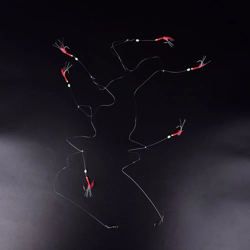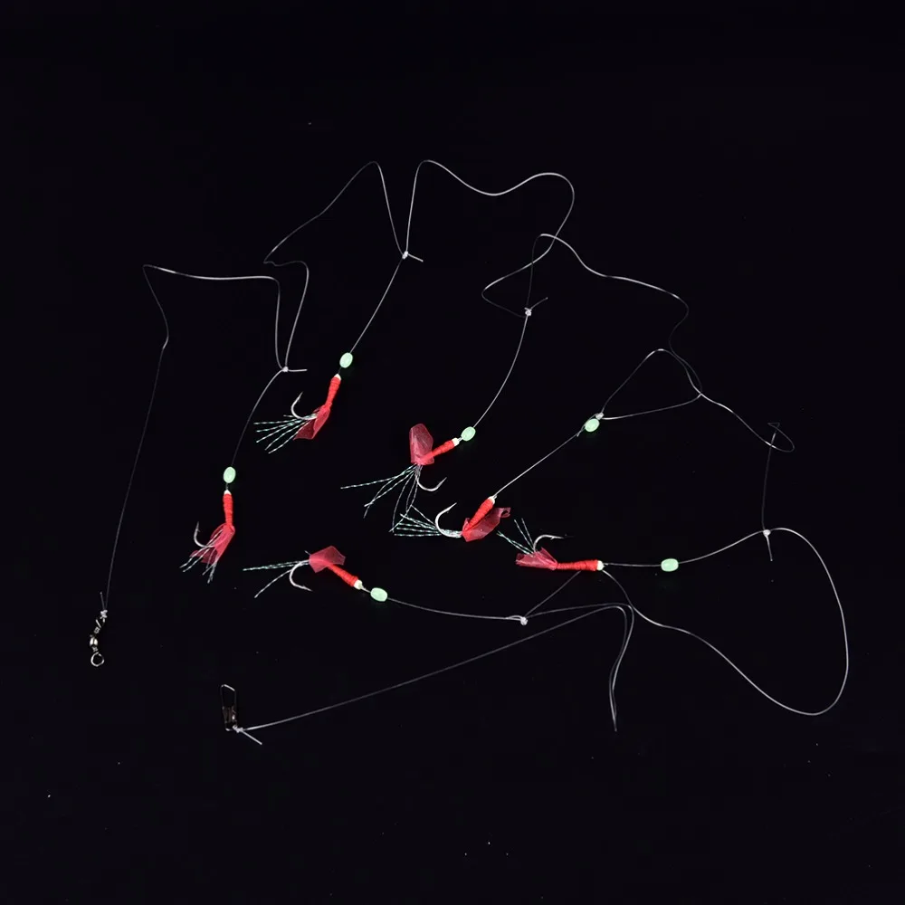 8 # -16 # Anzuelo de cuerda, aparejos de pesca Sabiki rojos, aparejos de pesca de mar de agua salada, anzuelo de curricán, cebo líder de fluorocarbono, equipo de pesca
