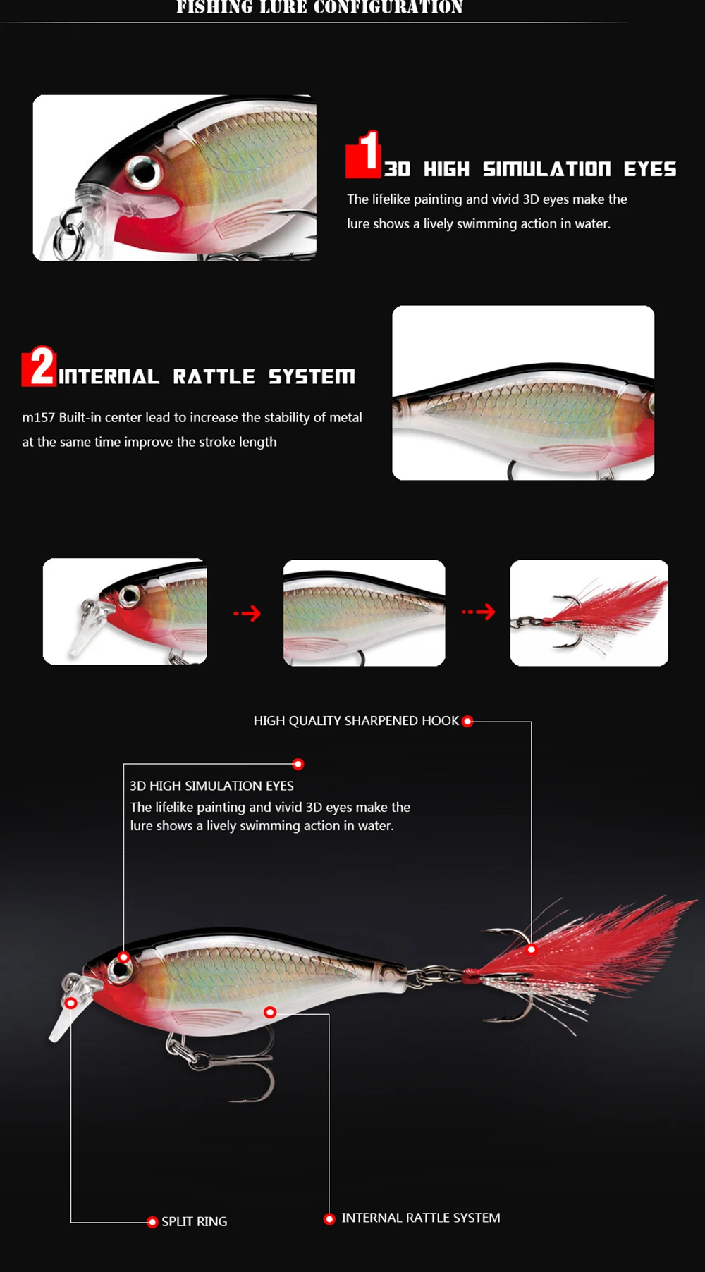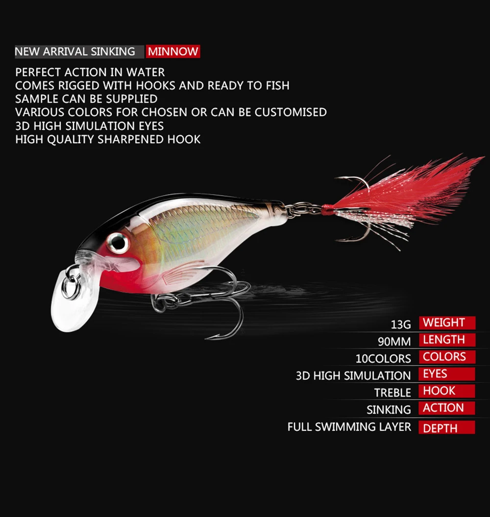 8.5cm 12.3g señuelo de pesca Minnow Wobbler señuelo hundido Jerkbait Swimbait cebo duro Artificial cebo para trucha pesca en el océano cebo para lubina