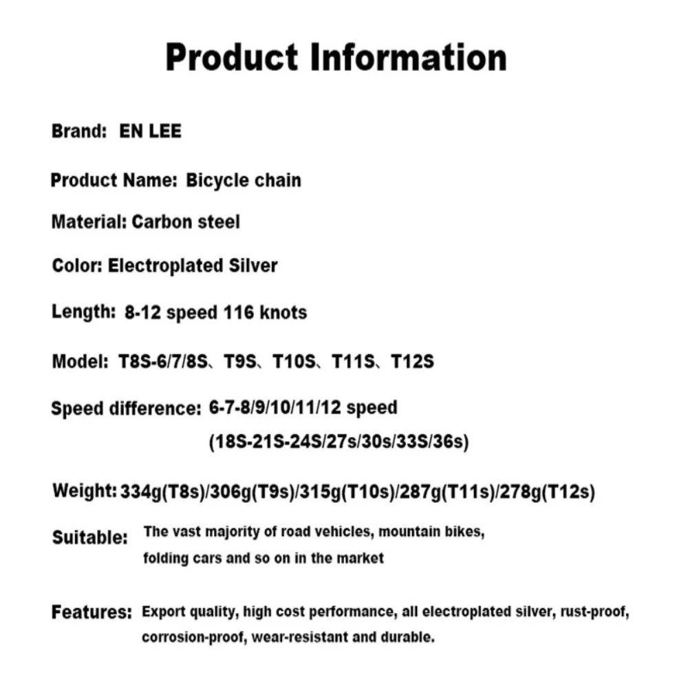 1.ENLEE Bicycle Chain suitable for 6-7-8 speed, 9 speed, 10 speed, 11 speed, and 12 speed bikes.