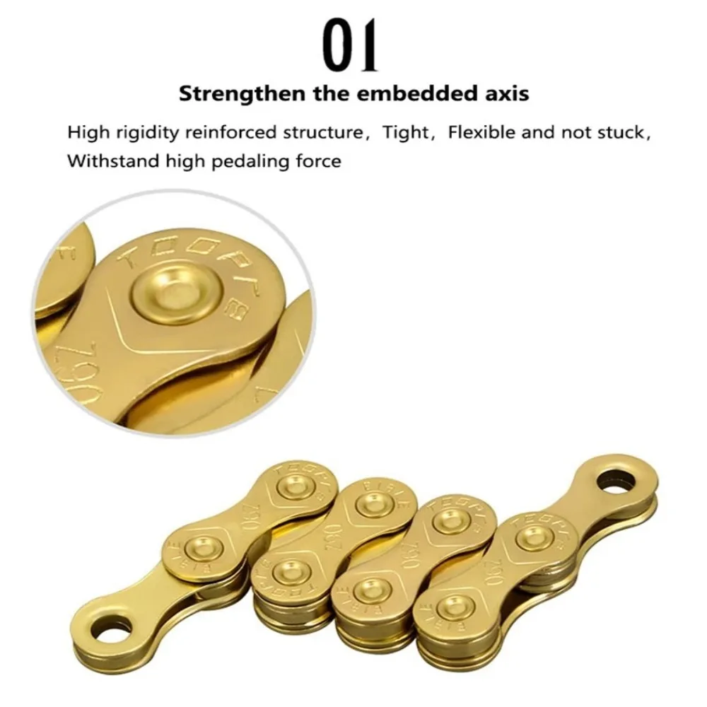 5.Cadena brillante de larga duración con alta resistencia a la tracción y a la torsión, cambio de velocidad ágil y suave.