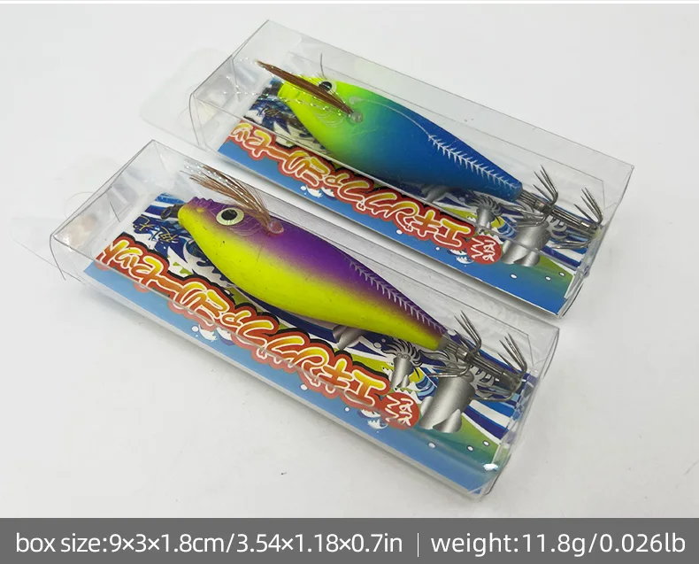 Nombre del productoCebo para jigging de calamarLongitud8,5 cm/3,35 pulgadasPeso12 gramosColor8 colores