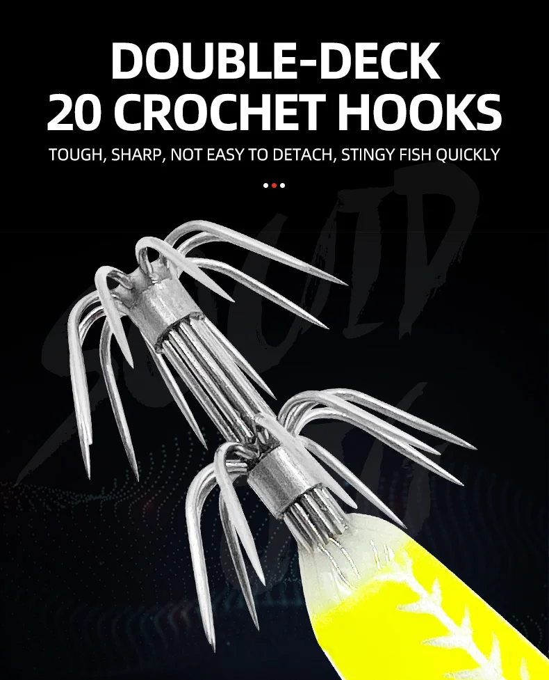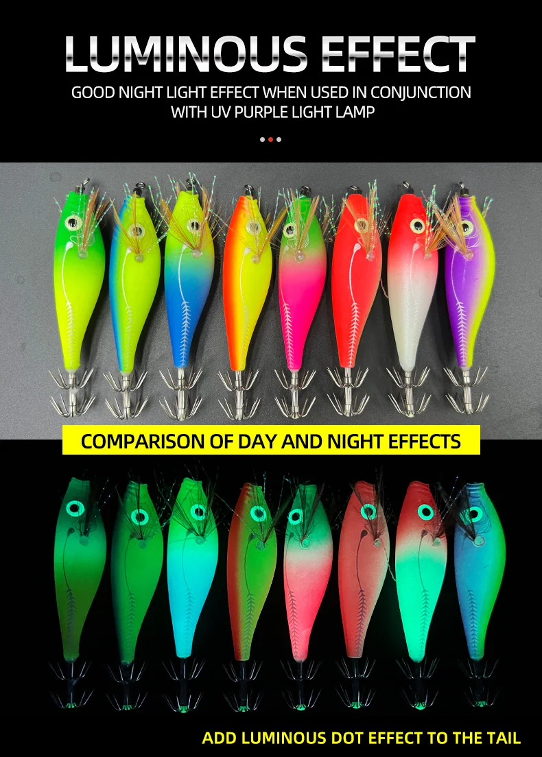 Señuelo luminoso para calamar, pesca en el mar, señuelo para camarones de madera, aguas saladas, sepia, anzuelo para calamar, cebo para camarones, Wobbler Pesca【Aplicación versátil】:Adecuado para diversos escenarios de pesca, este anzuelo para gambas brillante se puede utilizar tanto en agua dulce como en agua salada.Su alta visibilidad y su atractivo brillo lo convierten en una excelente opción para apuntar a una amplia gama de especies de peces, mejorando su tasa de éxito en la pesca.【Potente diseño de gancho】: