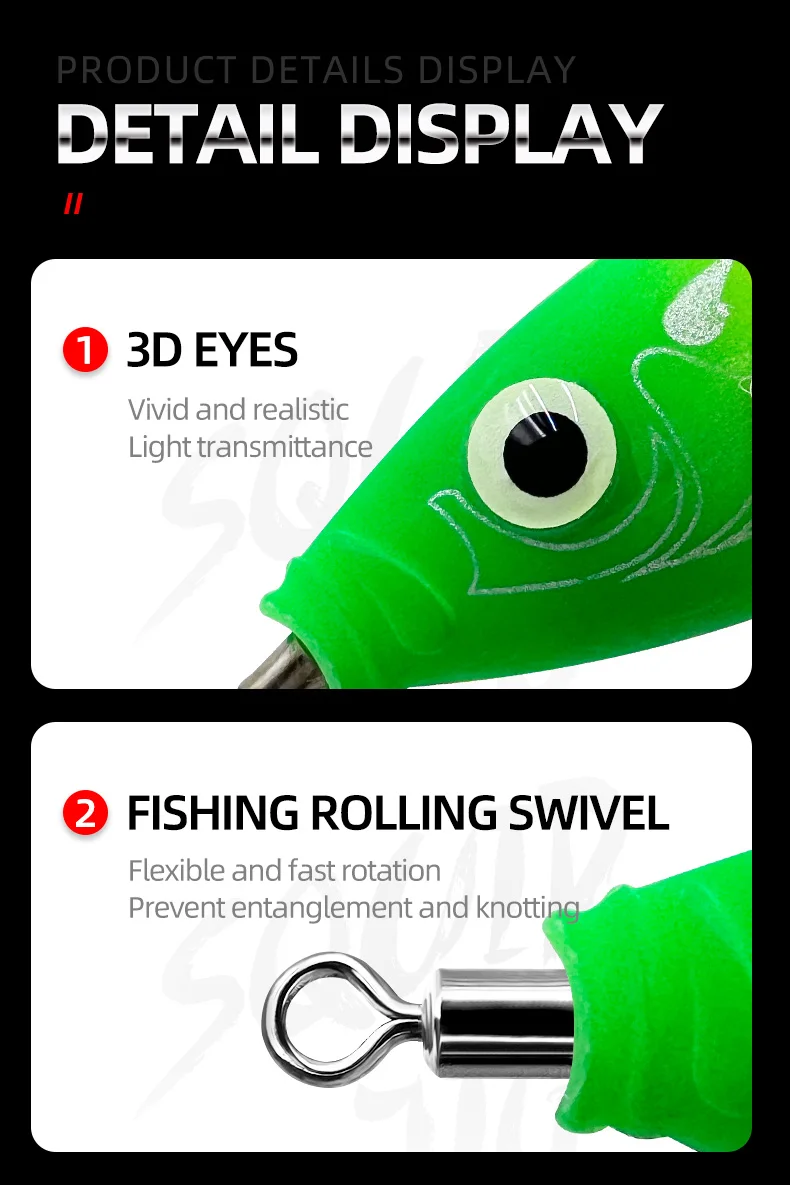 【Portabilidad conveniente】:Diseñado para facilitar su transporte, este cebo de pesca de pulpo y sepia es liviano y portátil, lo que permite a los entusiastas de la pesca llevarlo consigo dondequiera que vayan.Viene con una práctica cubierta de gancho para guardar ordenadamente el gancho en una caja de aparejos o mochila, protegiéndolo de lesiones accidentales.