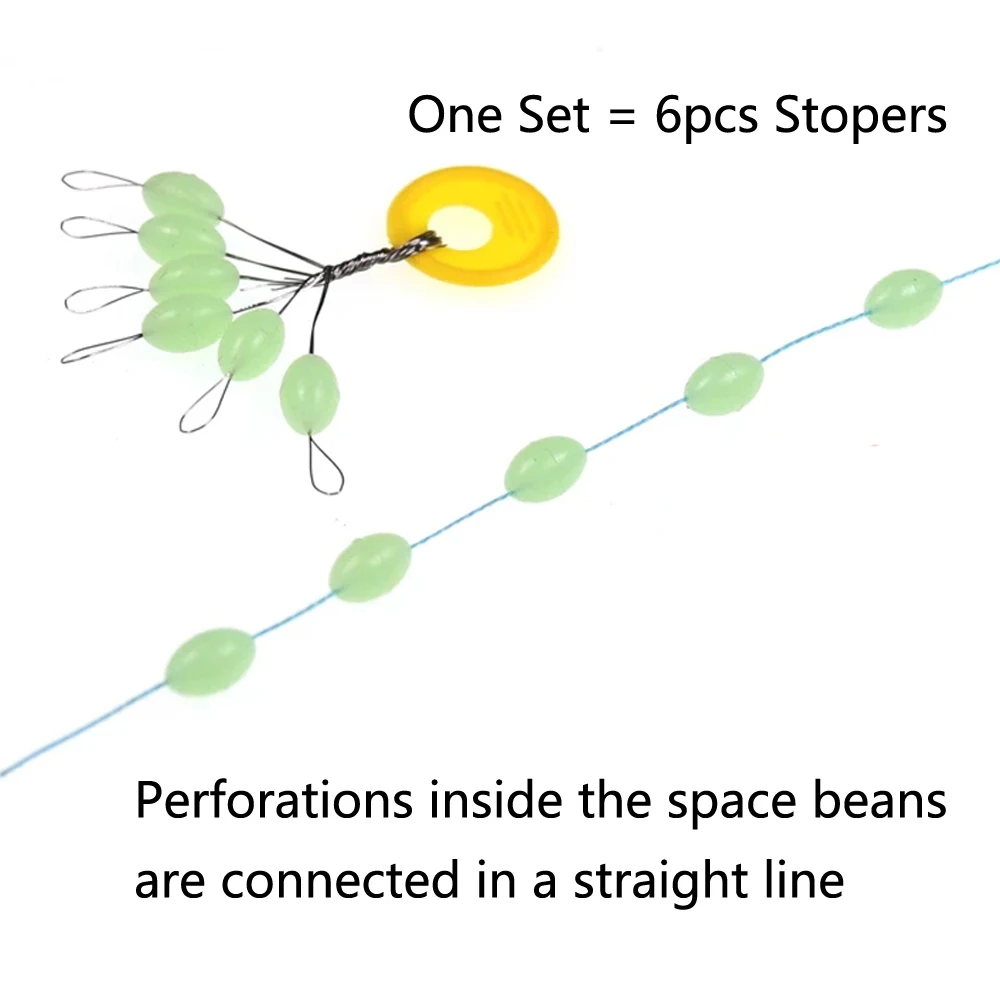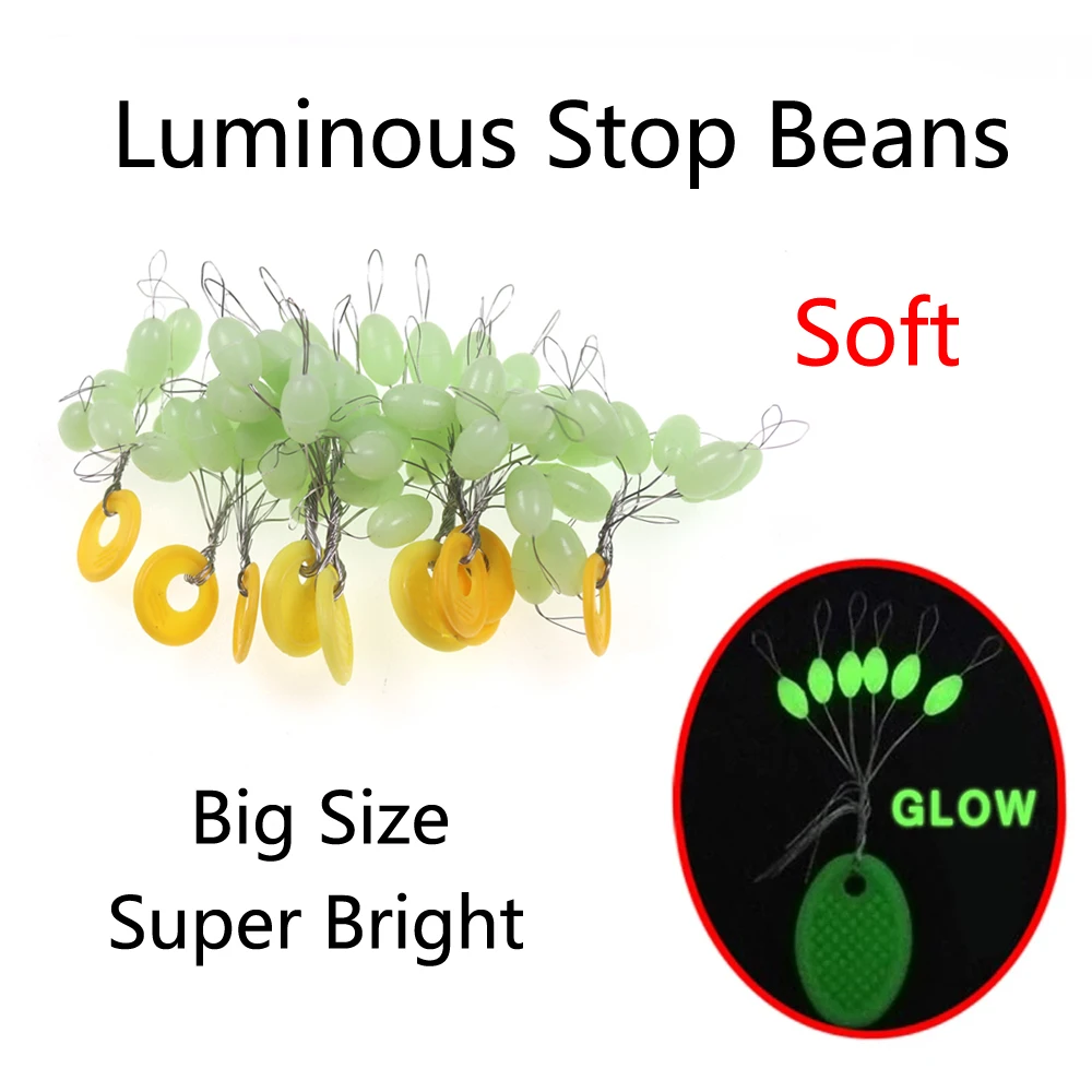 8 juegos=48 tapones de gran tamaño, cuentas amortiguadoras luminosas de goma suave para aparejos de pesca en agua salada, accesorios prácticos de pesca