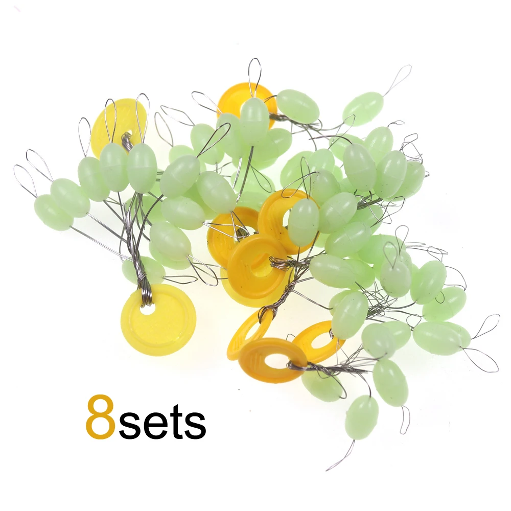 8 juegos=48 tapones de gran tamaño, cuentas amortiguadoras luminosas de goma suave para aparejos de pesca en agua salada, accesorios prácticos de pesca