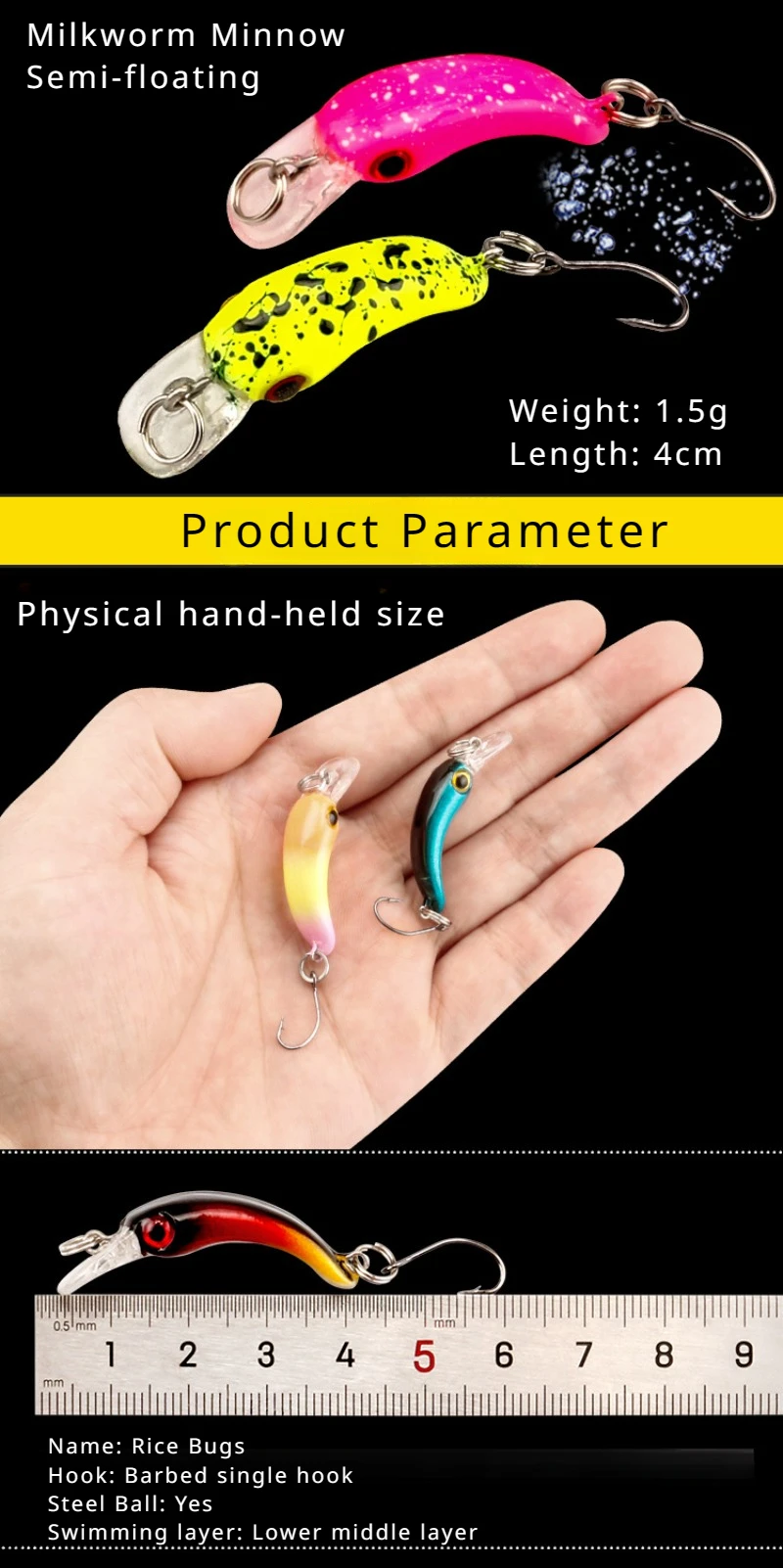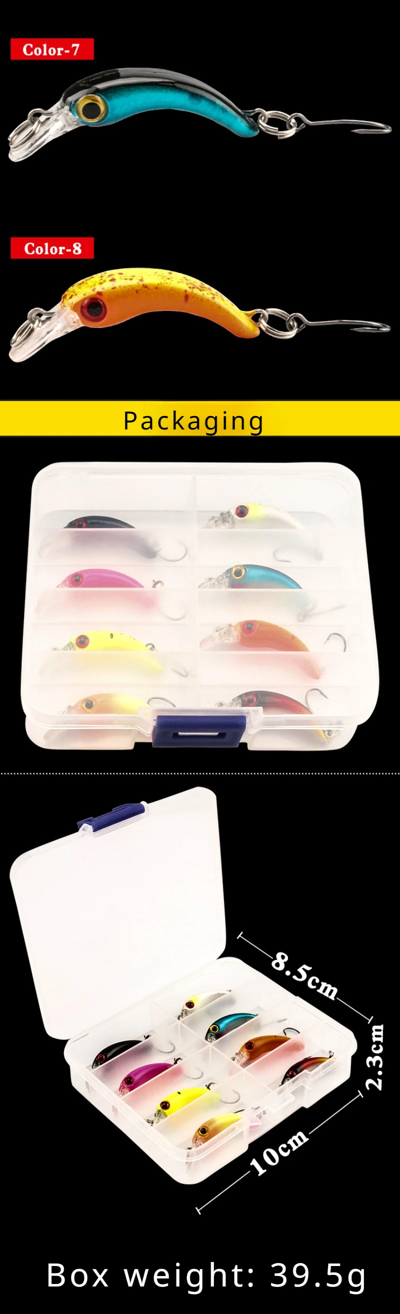 Llegó en perfectas condiciones. Cada señuelo tiene un acabado muy bonito. También incluye un estuche, así que estoy muy satisfecho con el precio.