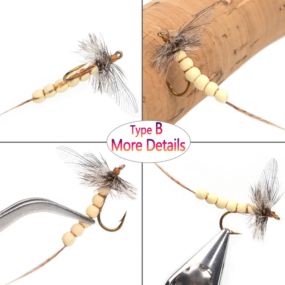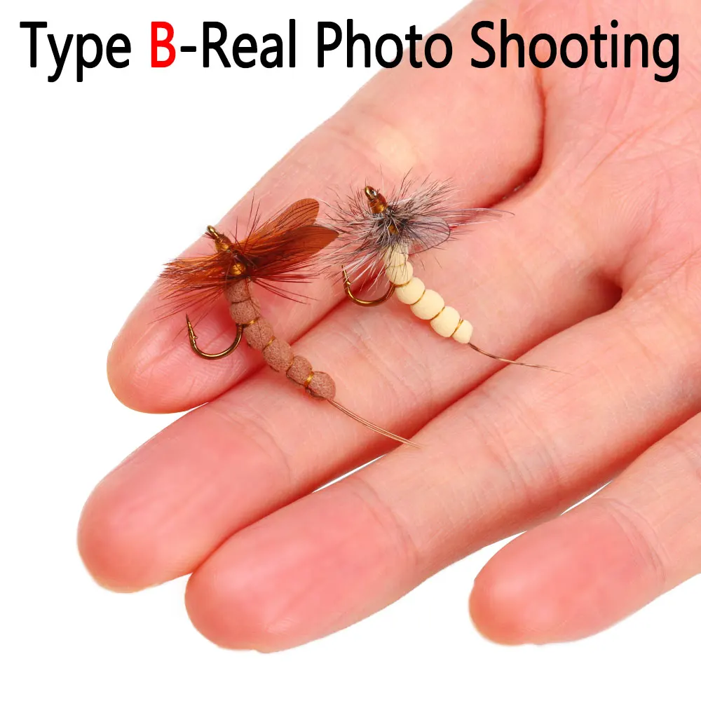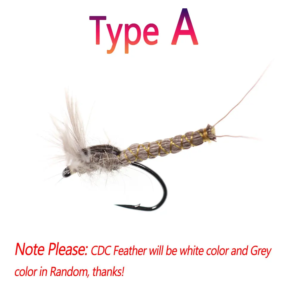 Bimoo 8PCS CDC Feather Wing Mayfly Dry Fly With Deer Hair Saddle Hackle Mayfly Floating Dry Fly Rocky River Trout Fishing Flies Bait Lure