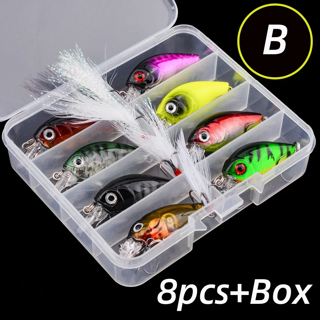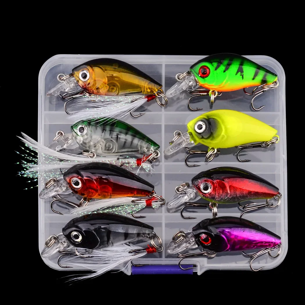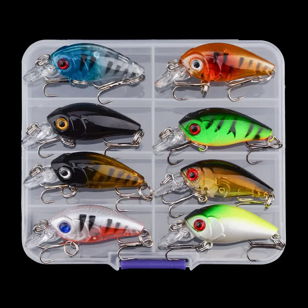 8 Uds. Mini señuelo de pesca Crankbait de 45mm, cebo Artificial de manivela dura, Wobblers de pesca de lubina, señuelos de peces Minnow Topwater japonés