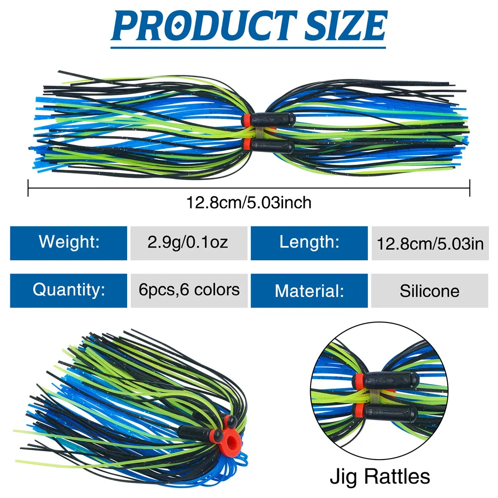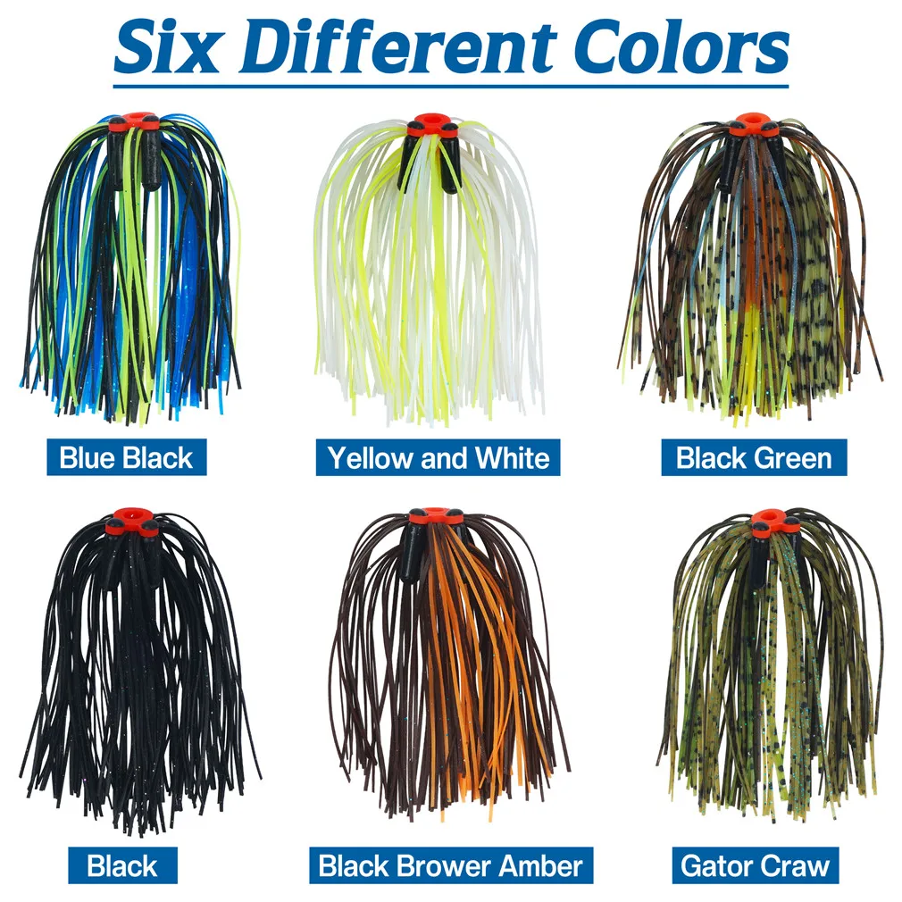 1.Faldas Jig fabricadas en silicona mediante un proceso especial.Es suave y duradero, de alta resistencia y fuerte desgaste.Hay sonajero de campana atado en cada cebo de falda.Es más atractivo pescar en el agua.