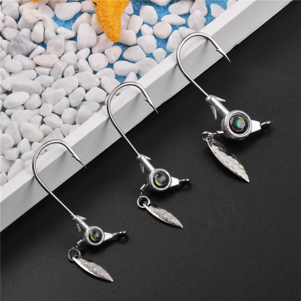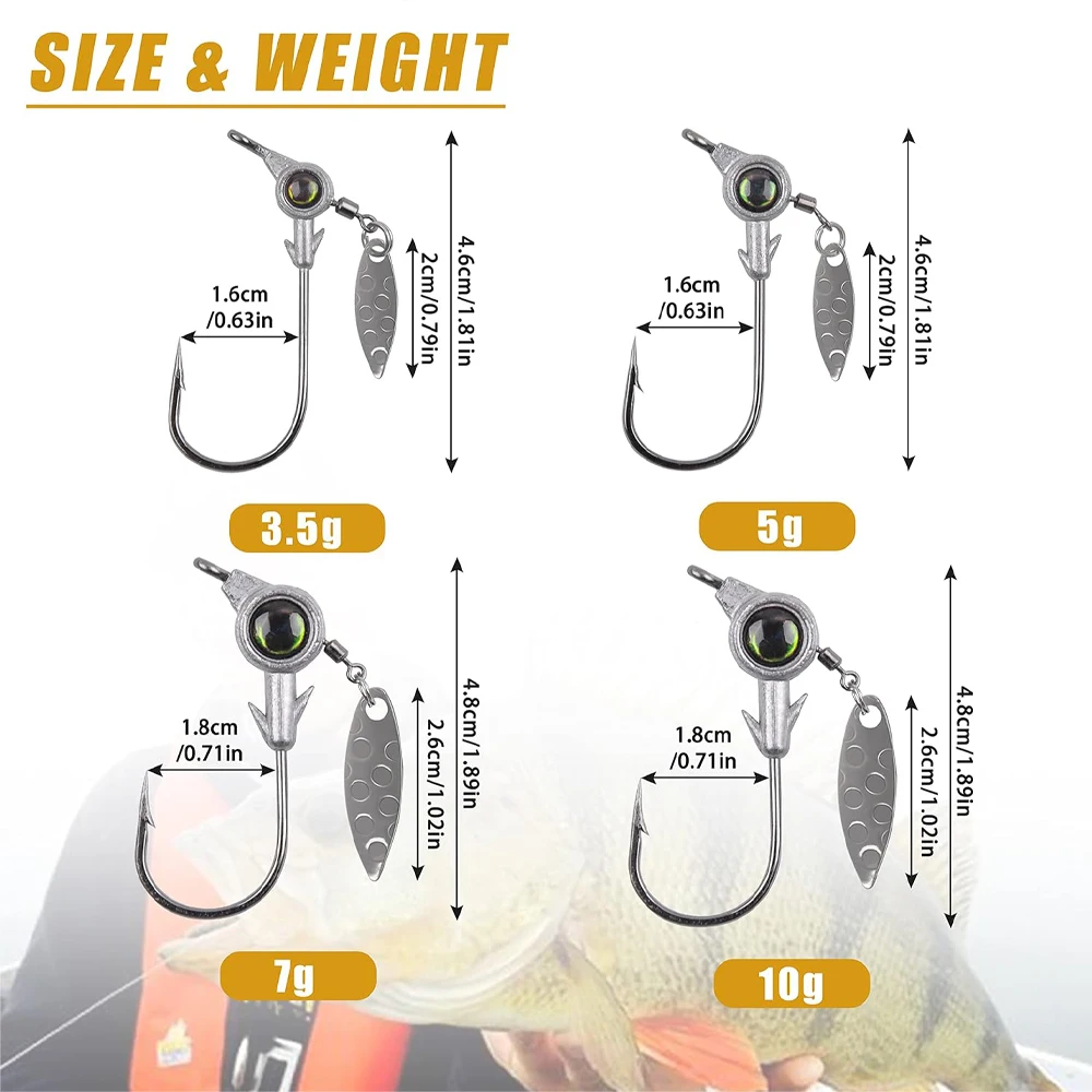 Kit de cabezales de anzuelo Crappie, anzuelos de pesca underspin, ojos 3D de agua salada, señuelos de hoja giratoria para pesca de trucha y lubina, 5 uds.