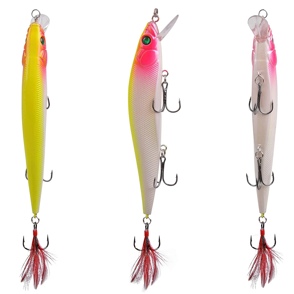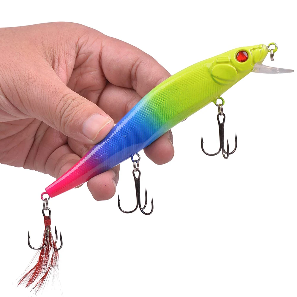 3. Each minnow bait with 2Pcs High carbo steel treble fishhooks. it is corrosion resistance and durable.