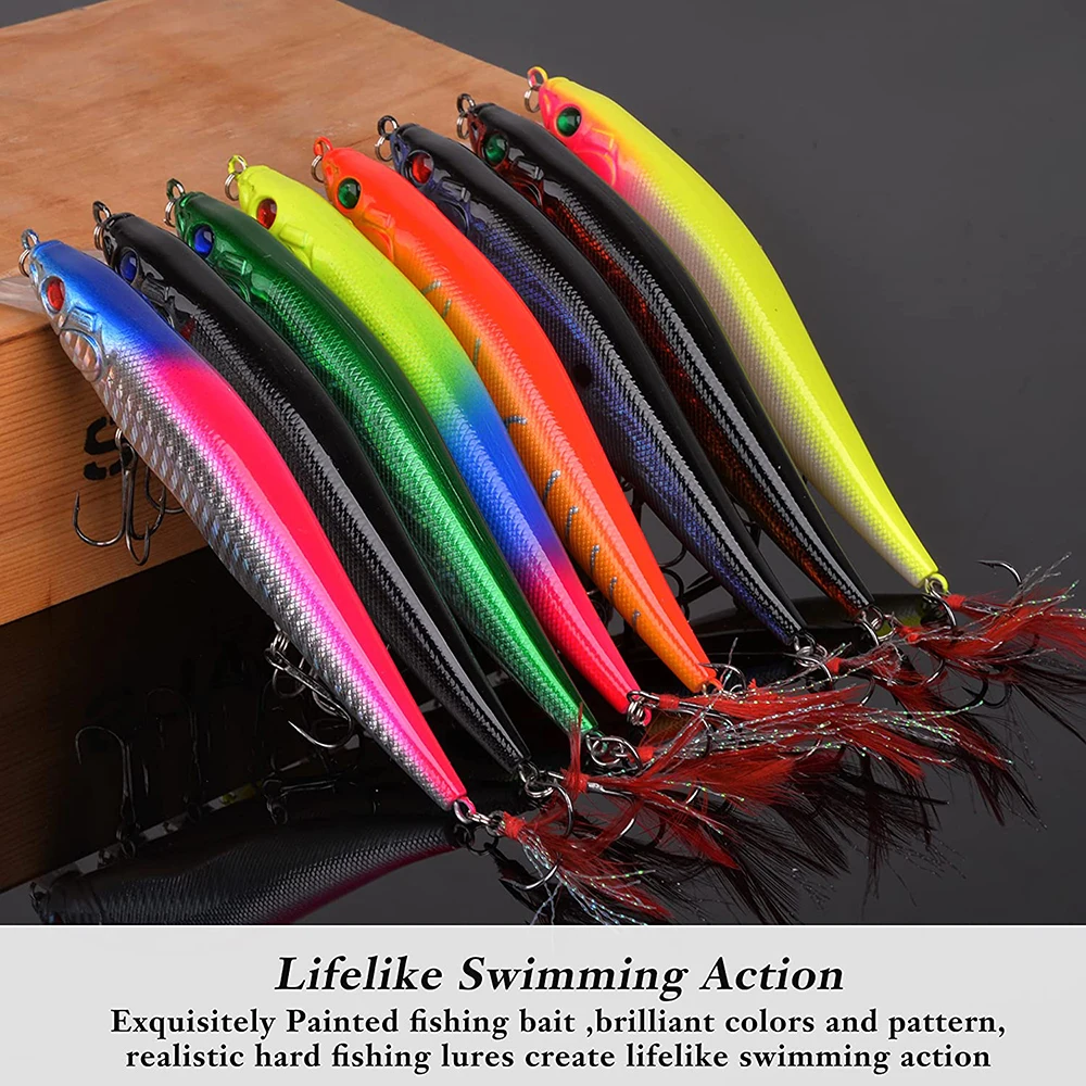 8PCS Minnow Bass Fishing Lures Jerkbait 22g Swimbait Deep Diving Sinking Lures with Treble Hook for Bass Trout Walleye Redfish